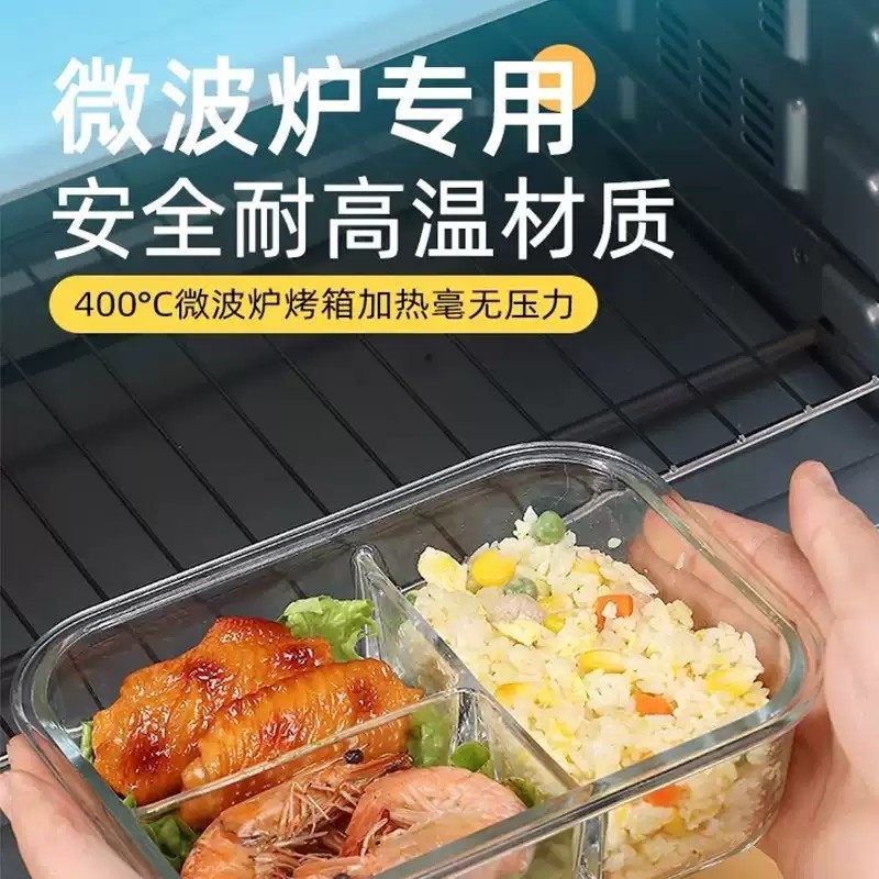 玻璃饭盒可微波炉加热专用的碗上班族学生带盖餐盒分隔便当保鲜盒