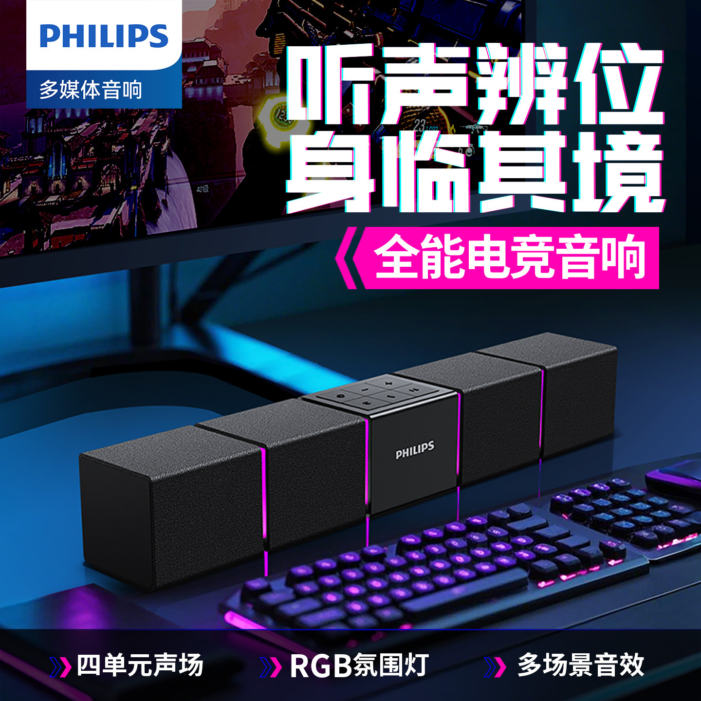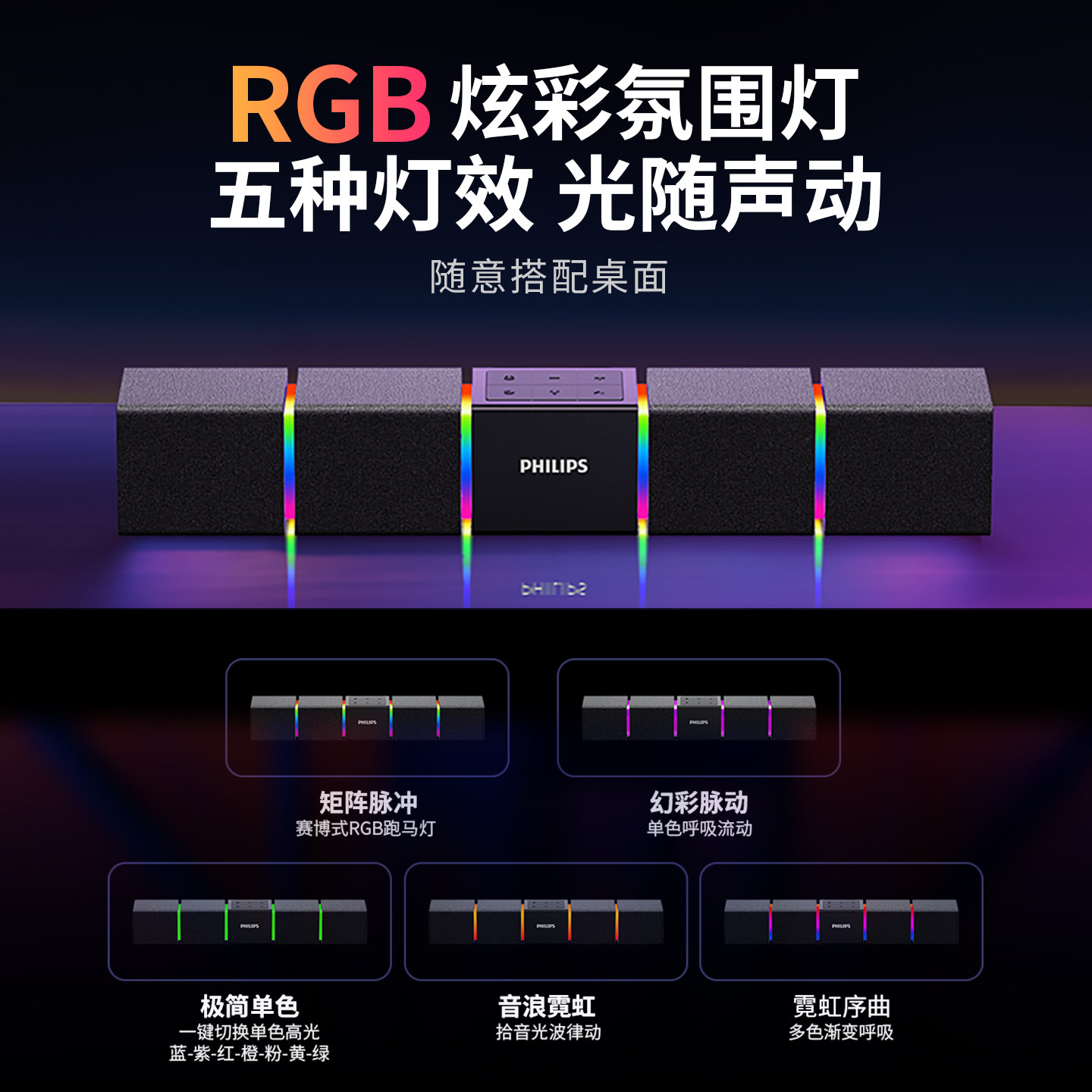 飞利浦电脑音响SPA5600台式家用蓝牙电竞音箱低音炮高音质RGB游戏