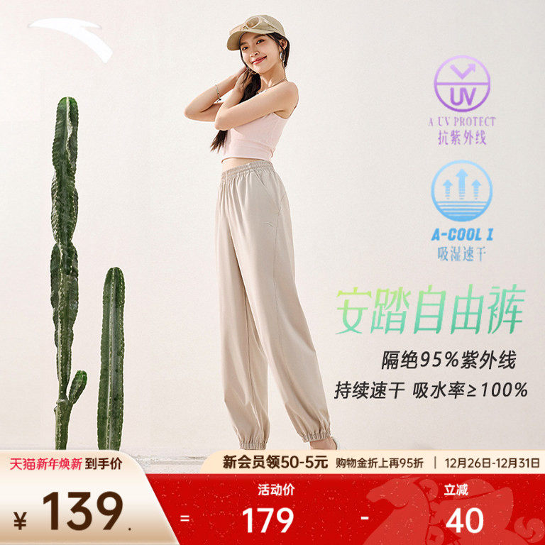 安踏自由裤丨舞蹈束脚裤速干防晒女士冬季新款宽松跑步运动长裤子