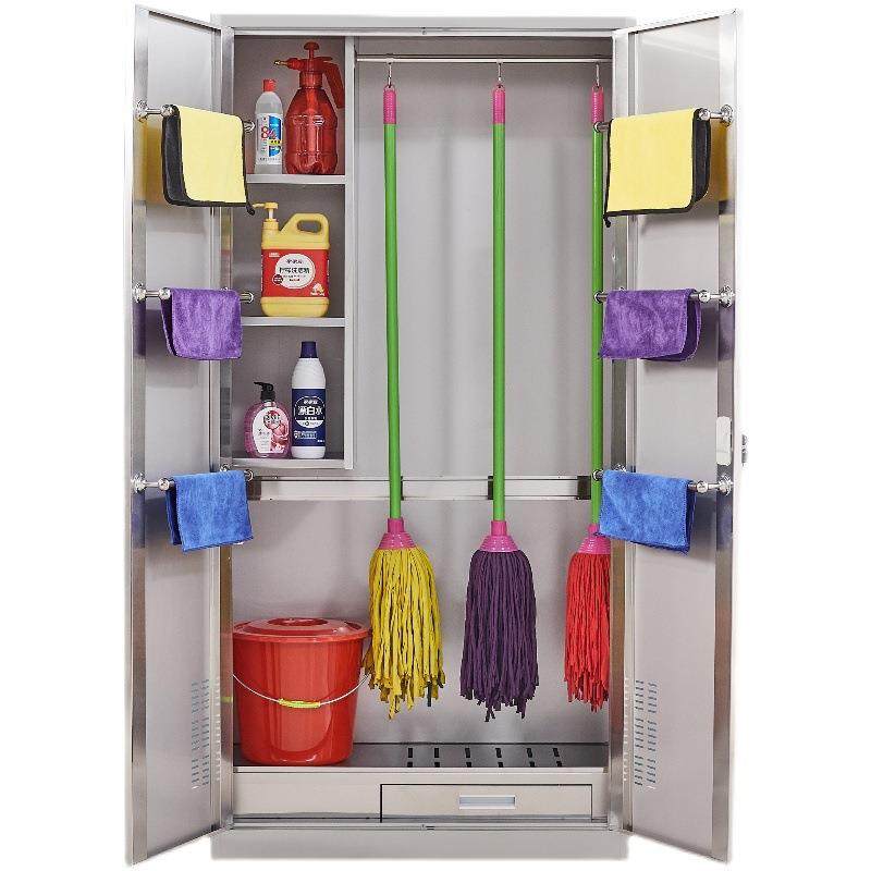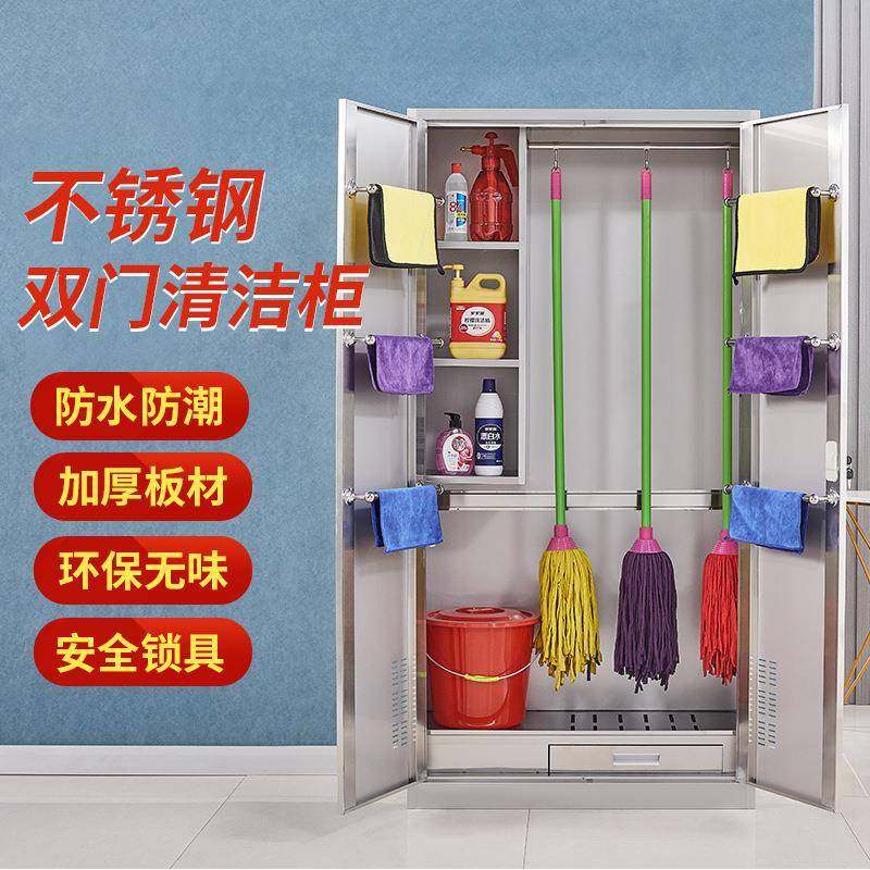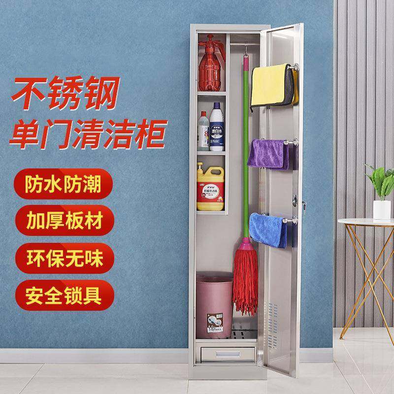 304不锈钢清洁柜教室单门双门卫生柜公司保洁工具储物收纳柜厂家