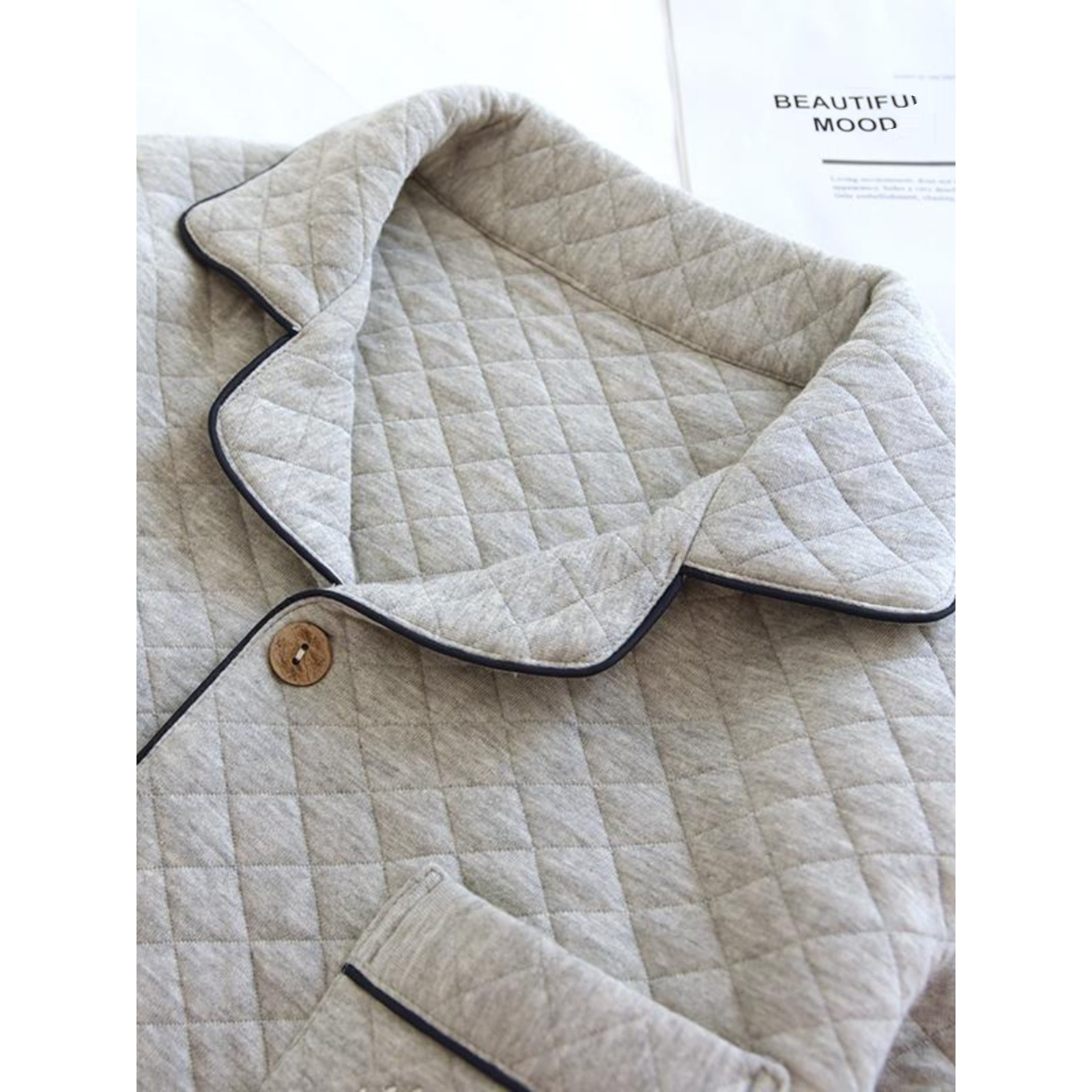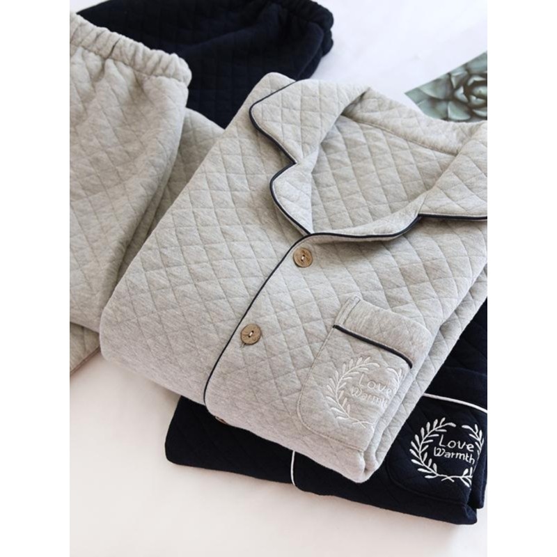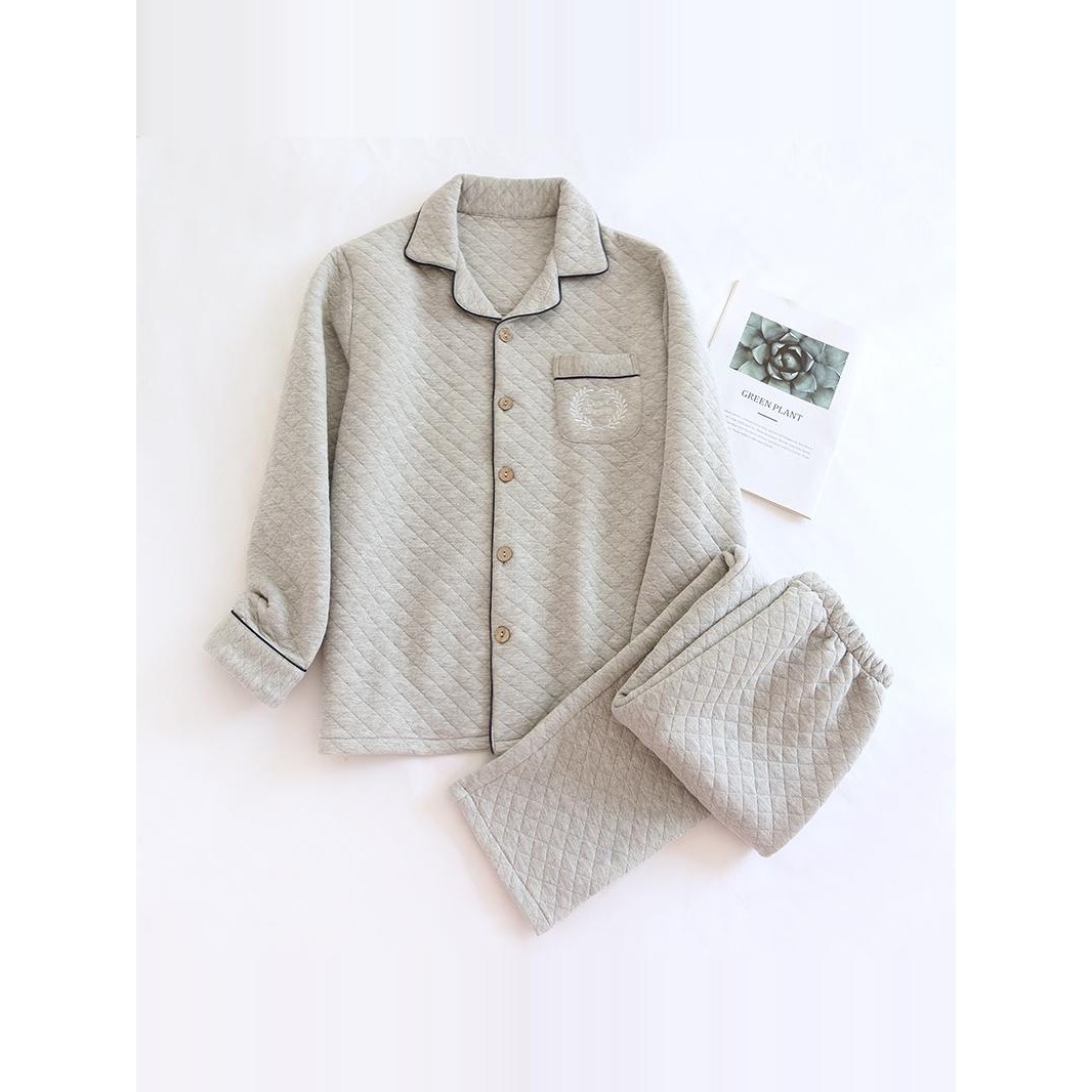 红豆新款纯棉空气棉秋冬季男士三层夹棉睡衣套装日系无印风保暖家