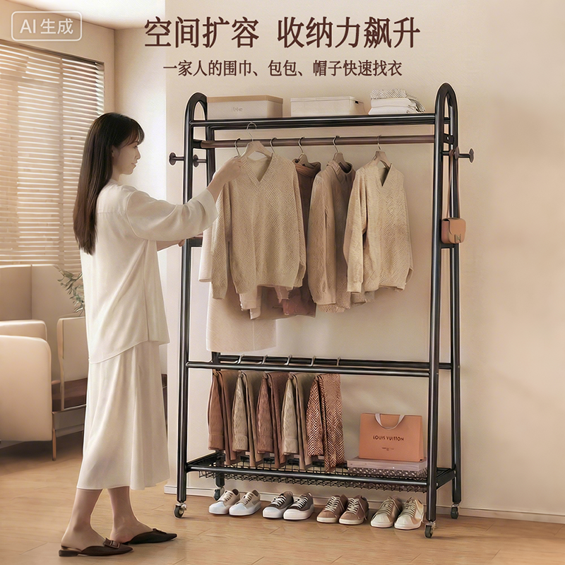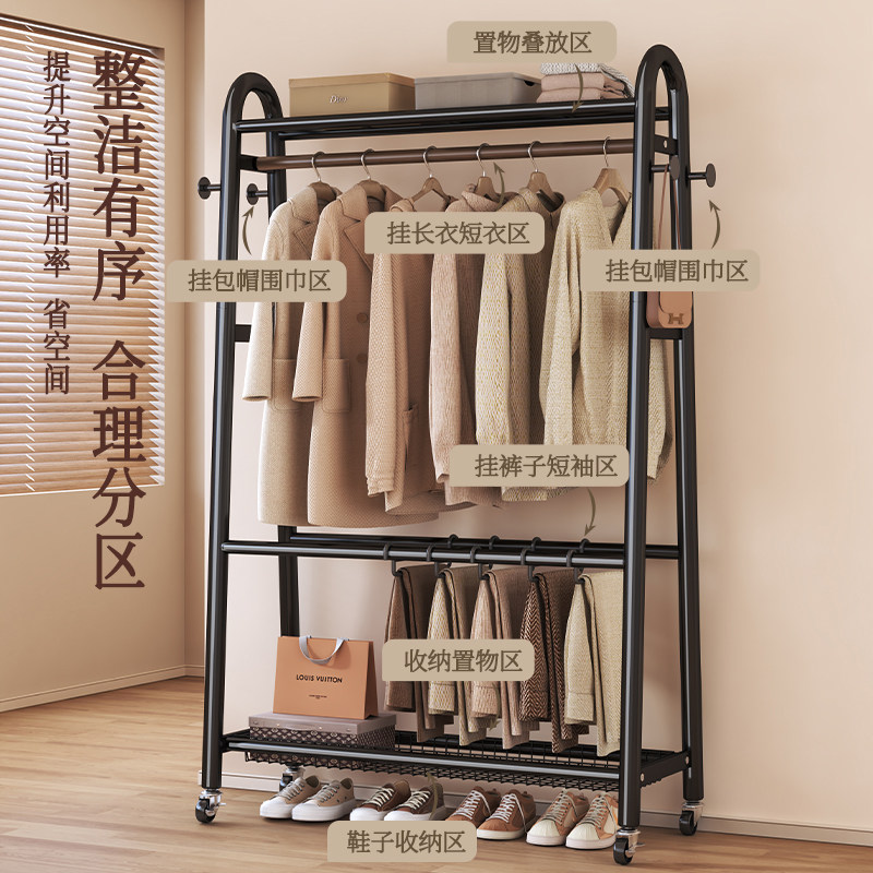 衣帽架落地卧室家用房间挂衣架置物晾衣架简易移动收纳挂衣服架子