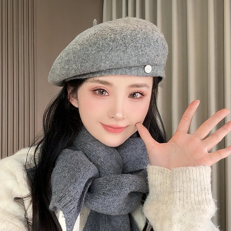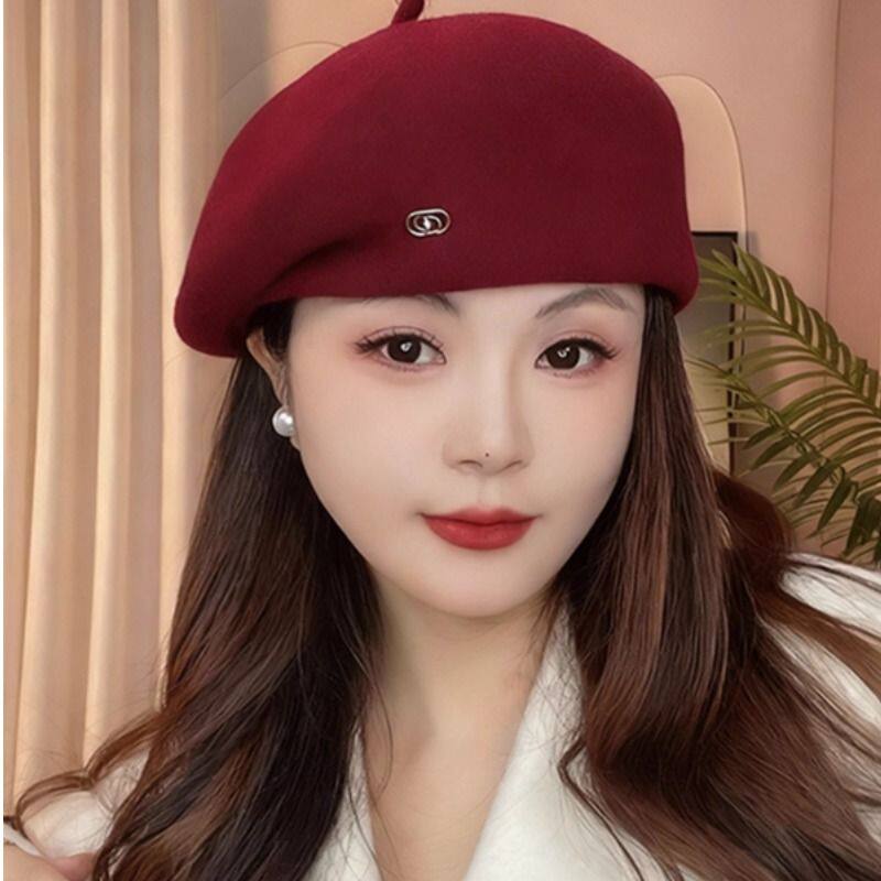 韩版气质保暖贝雷帽子女秋冬季羊毛呢时尚定型显脸小画家帽蓓蕾帽