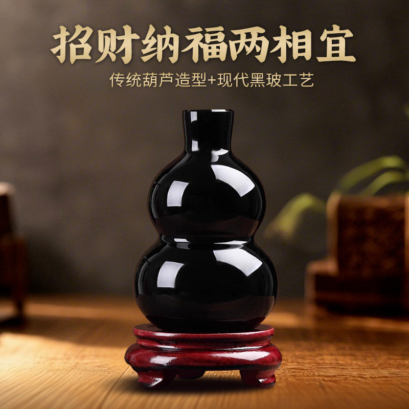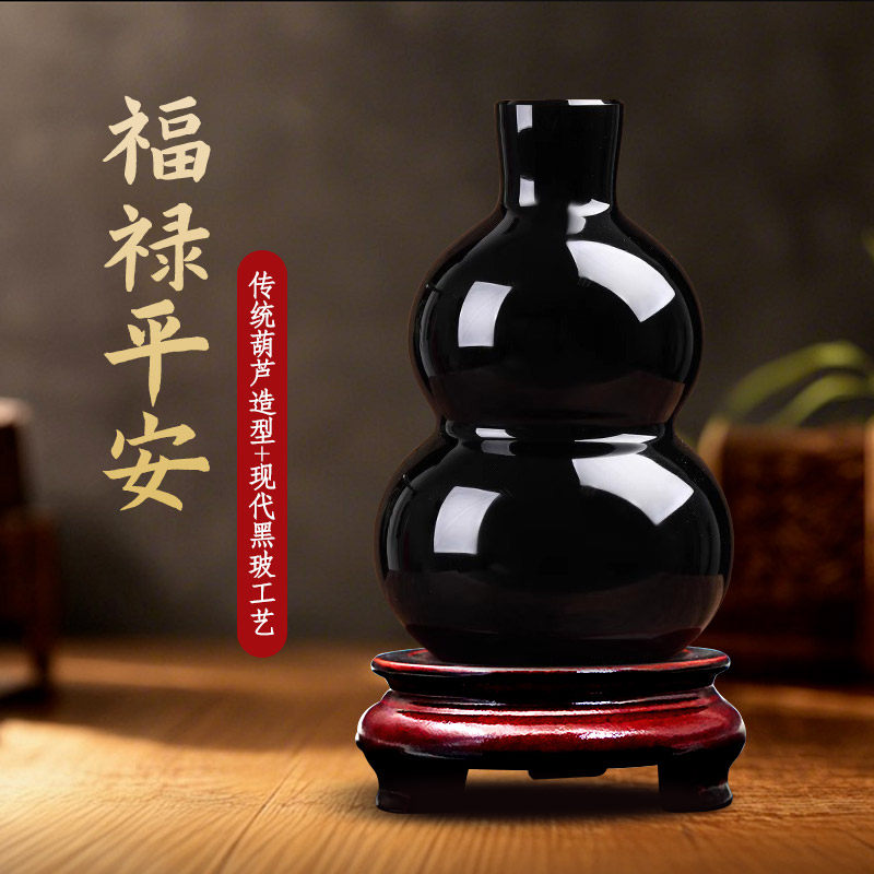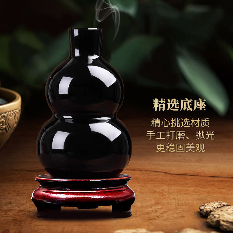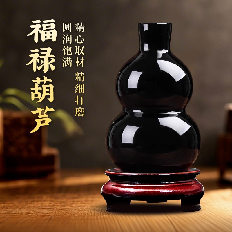 黑曜石葫芦摆件福禄黑水晶和合五福六字真言心经黑葫芦门店风水球