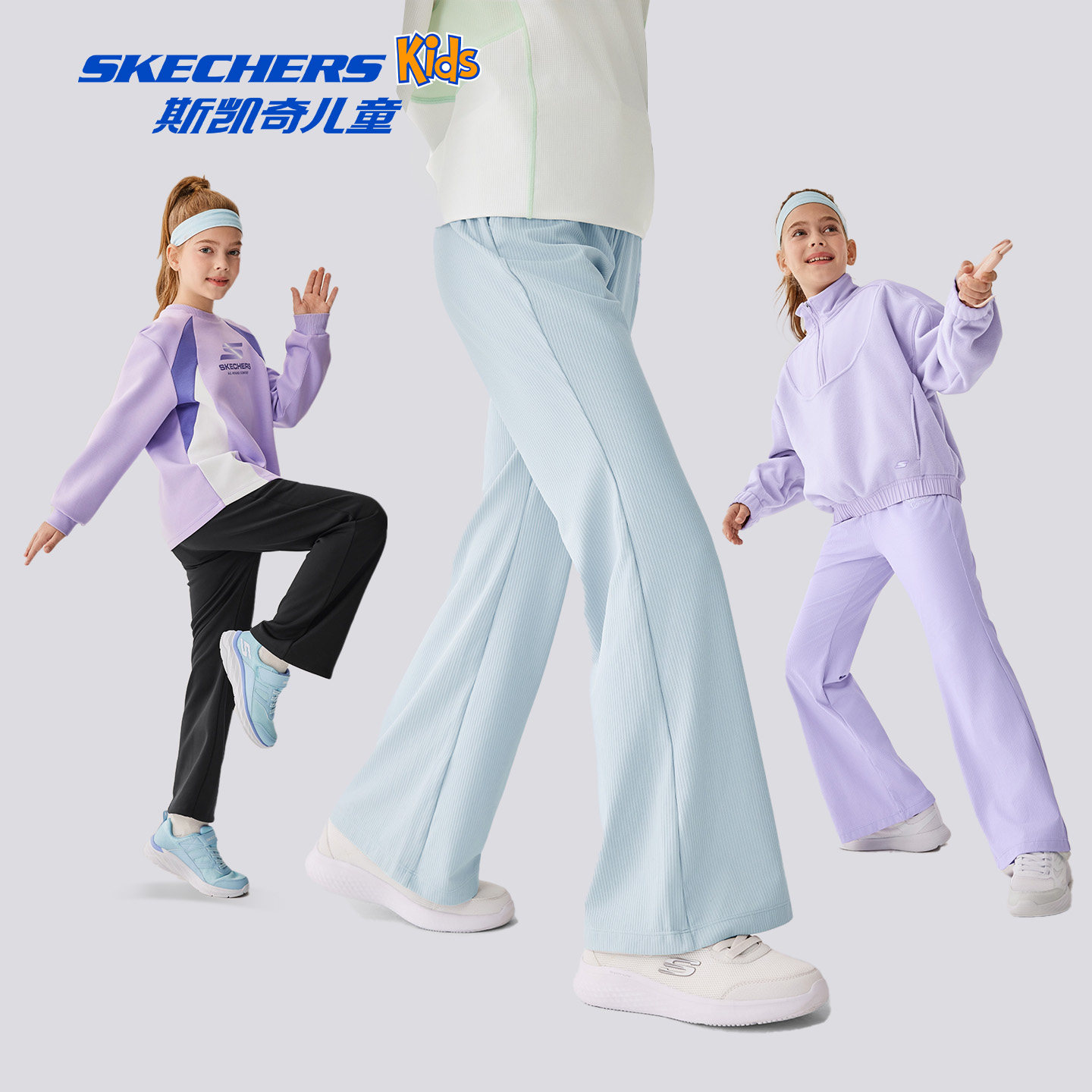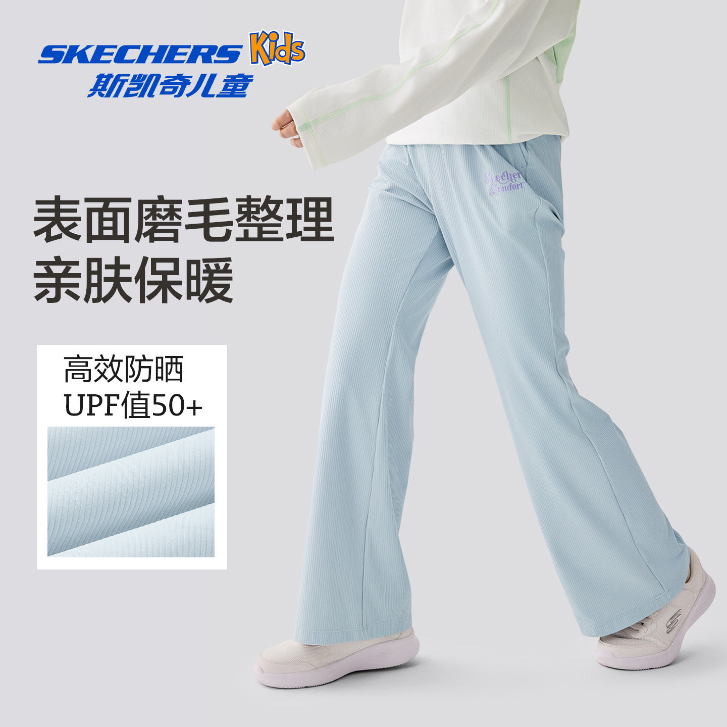 Skechers斯凯奇女童微喇裤秋冬童装时尚舒适长裤防紫外线运动裤