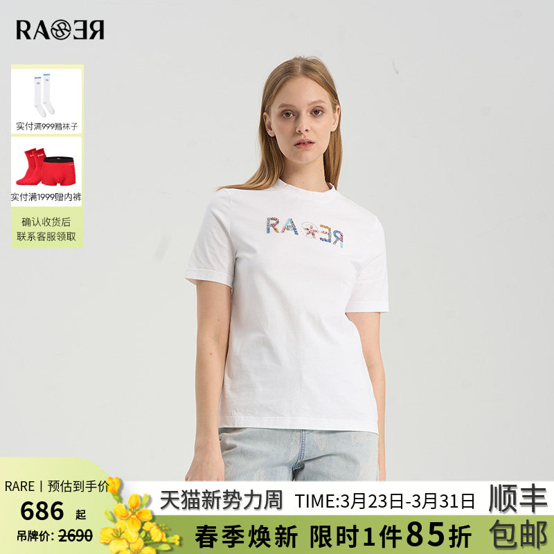 RARE威雅女裙夏季新款 女士棉质白色圆领短袖T恤RR22450906