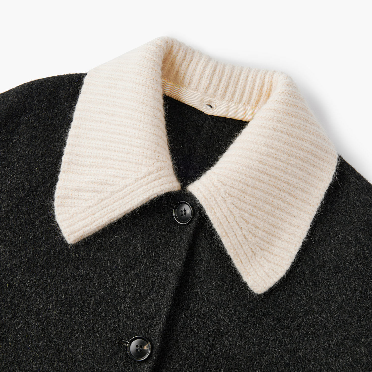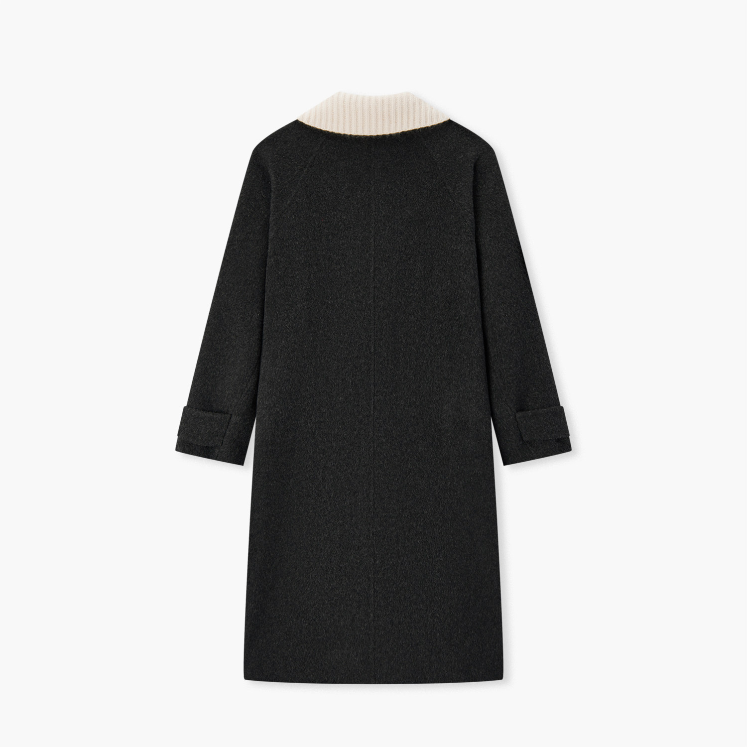 爱居兔可脱卸针织领双面呢大衣女冬季新款保暖防风毛呢外套