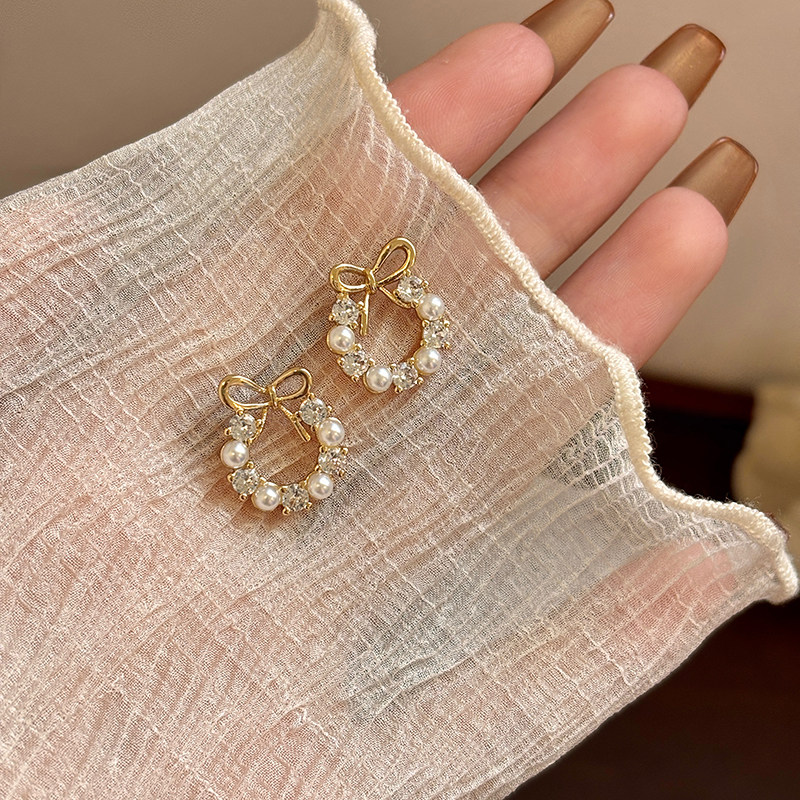 蝴蝶结珍珠耳钉女2025年新款爆款高级感轻奢耳环925纯银针耳饰品
