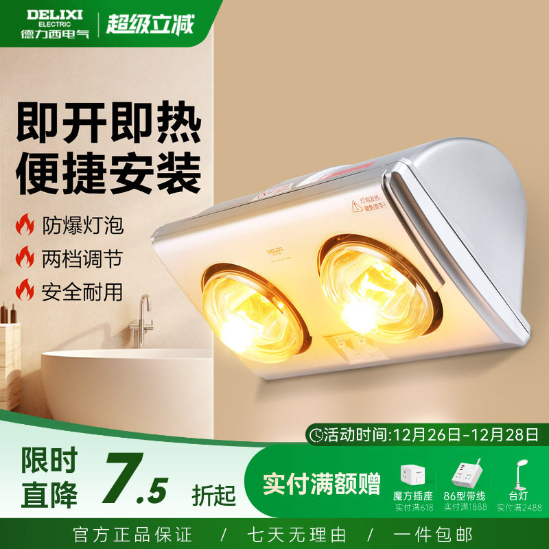 德力西壁挂式灯暖浴霸 二灯取暖安全速热 卫生间家用暖灯浴室浴霸