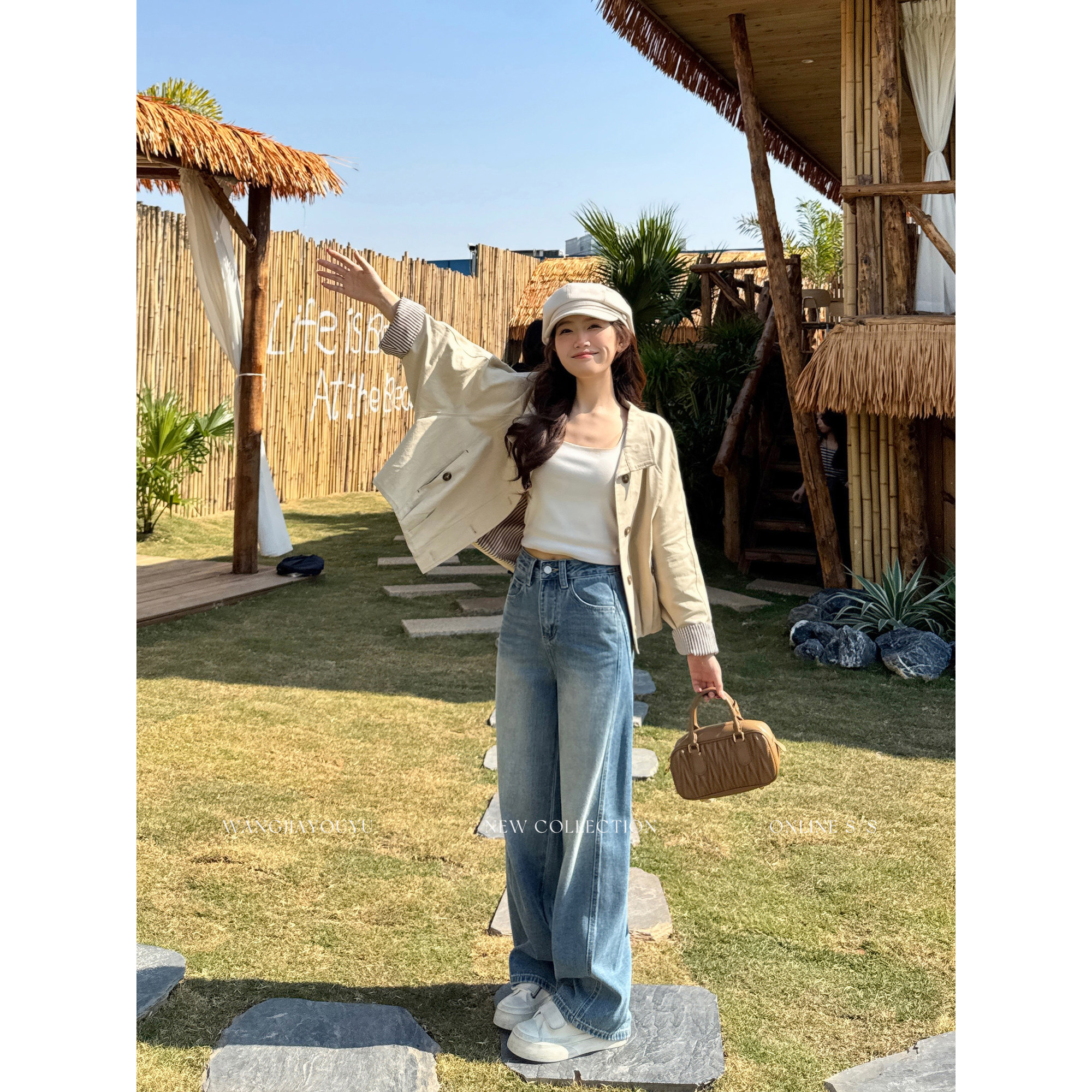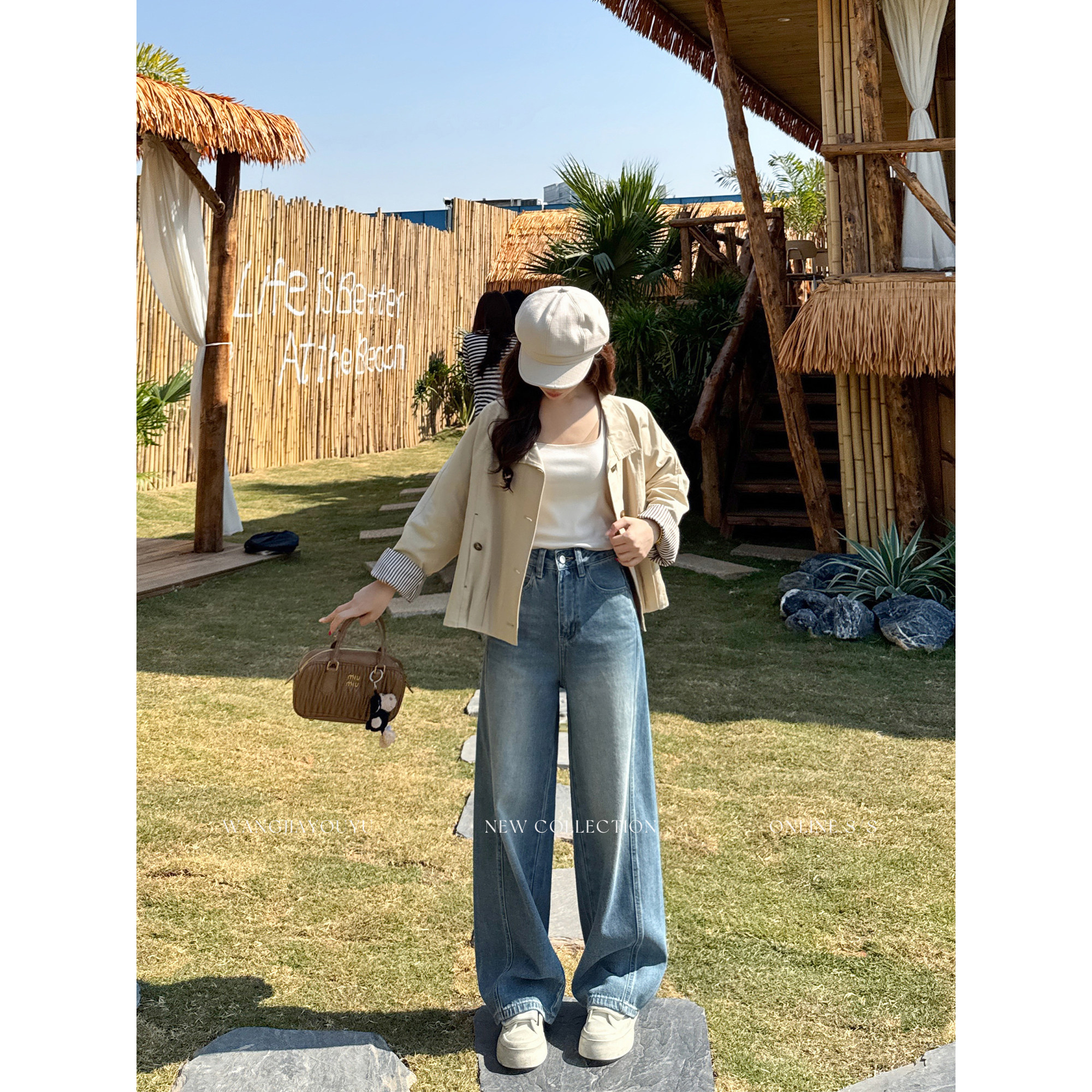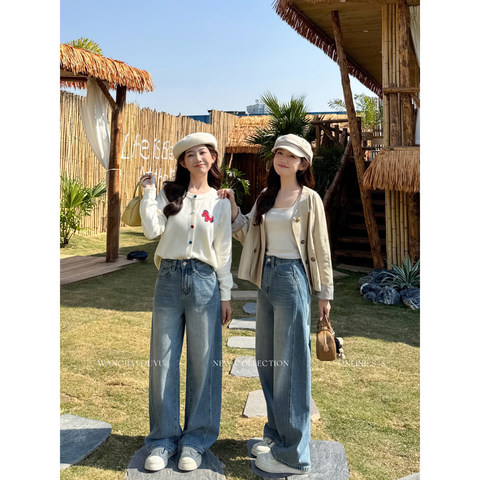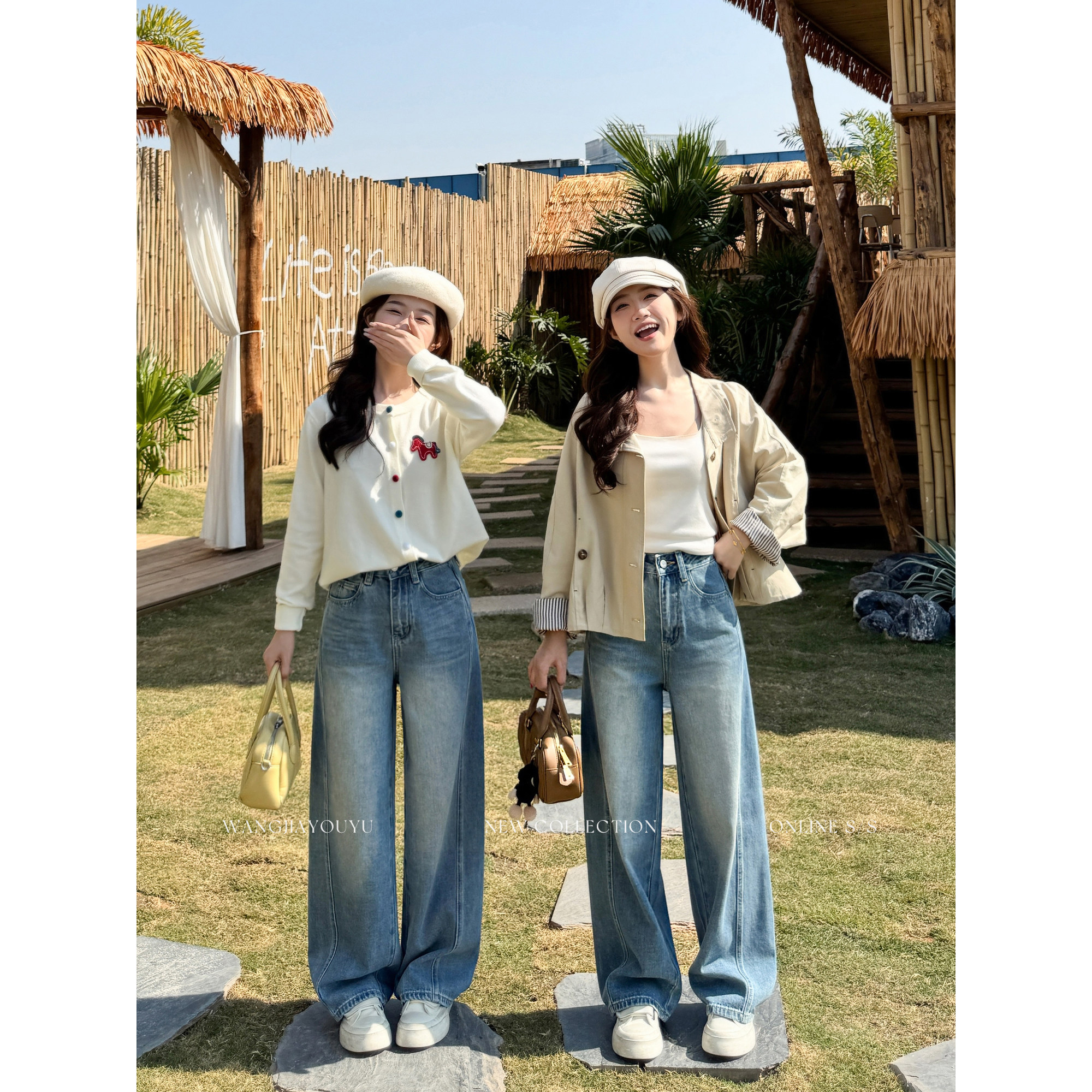王家有鱼【大姚小姚】小个子复古浅蓝弯刀阔腿裤女2026早春牛仔裤