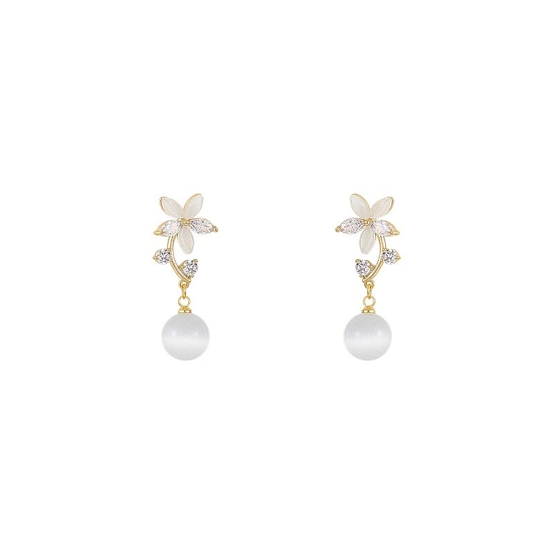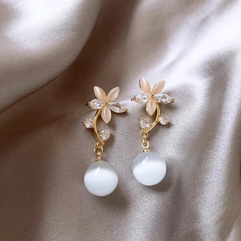 吊坠气质猫眼石花朵耳钉设计ins新款耳环独特简约百塔耳饰品女