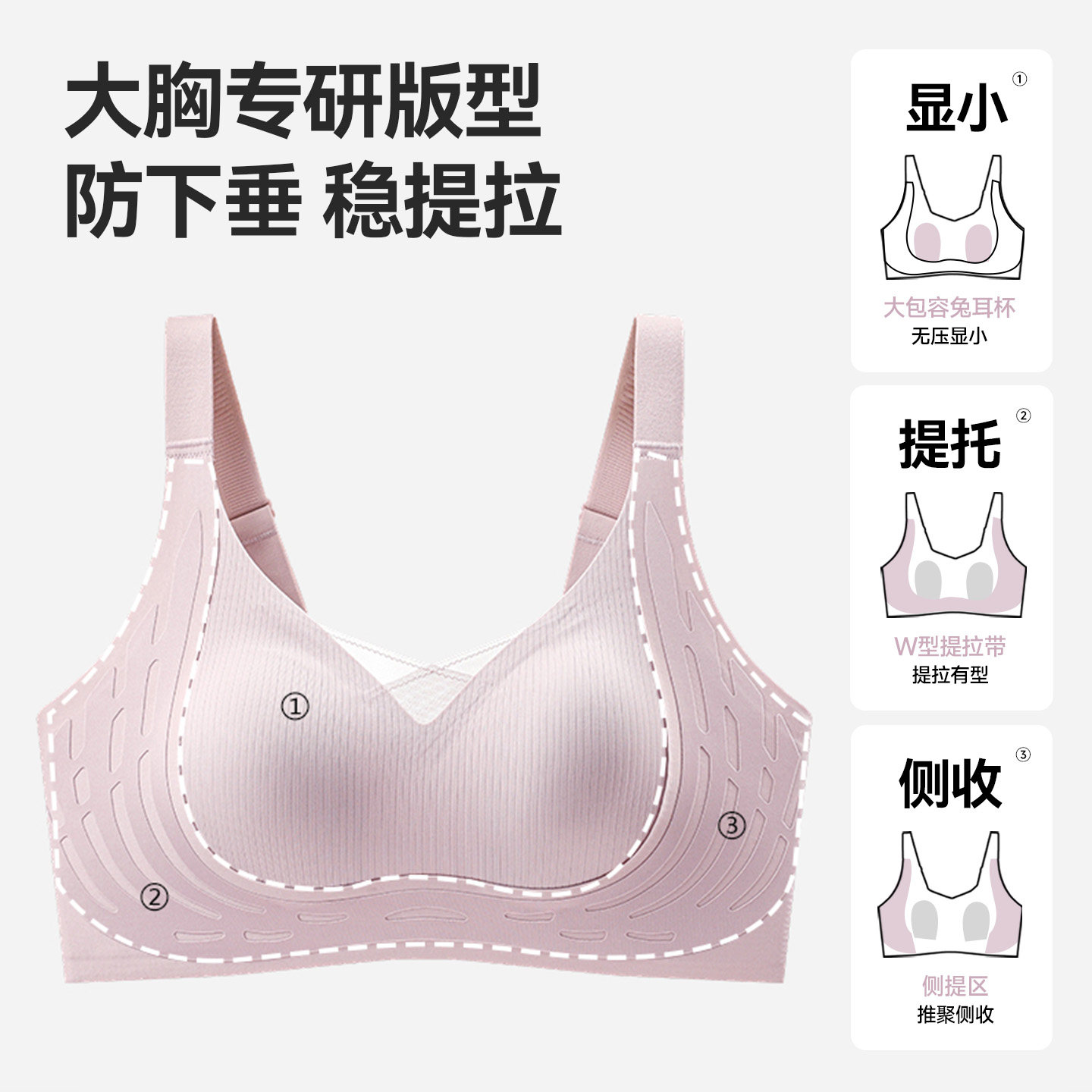 润微提拉内衣女大胸显小无痕提拉防下垂聚拢收副乳胸罩爆款文胸