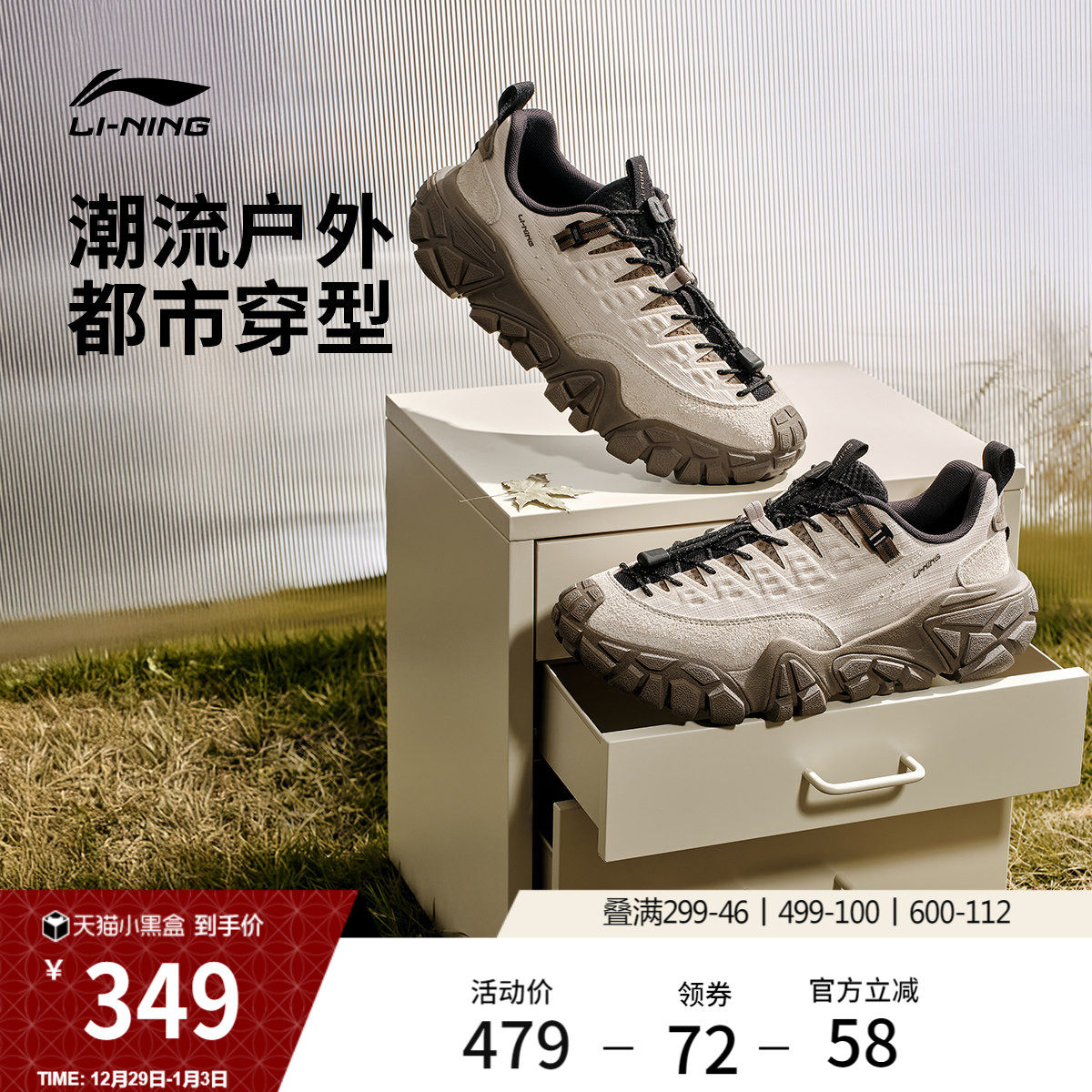 李宁沙丘丨休闲鞋男鞋冬季新款山系轻户外老爹鞋耐磨防滑运动鞋子