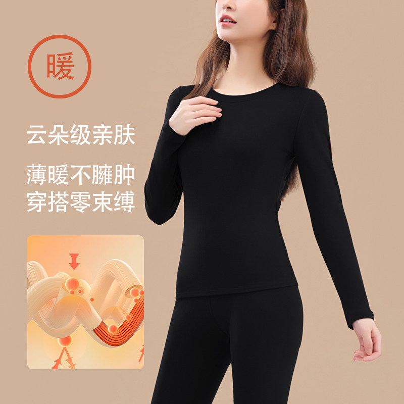 莹柔7057秋冬中厚棉秋衣秋裤圆领修身保暖内衣棉毛衫基础打底套装