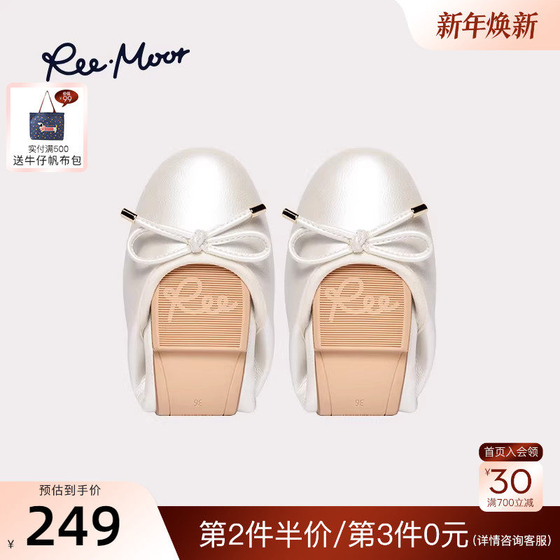 REEMOOR睿慕2025年秋季新款蝴蝶结蛋卷鞋圆头浅口平底单鞋女鞋