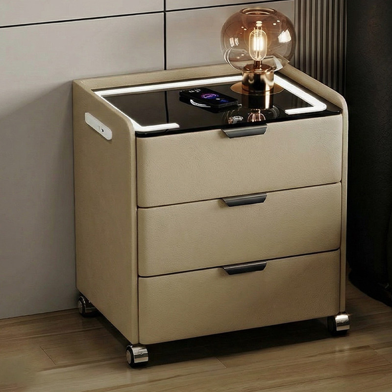 智能全实木床头柜无线充电卧室置物柜可移动高级感储物床边柜收纳