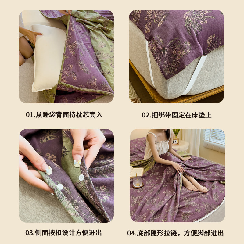 如奕A类全棉双层纱隔脏睡袋酒店出差旅行必备神器纯棉床单被套罩