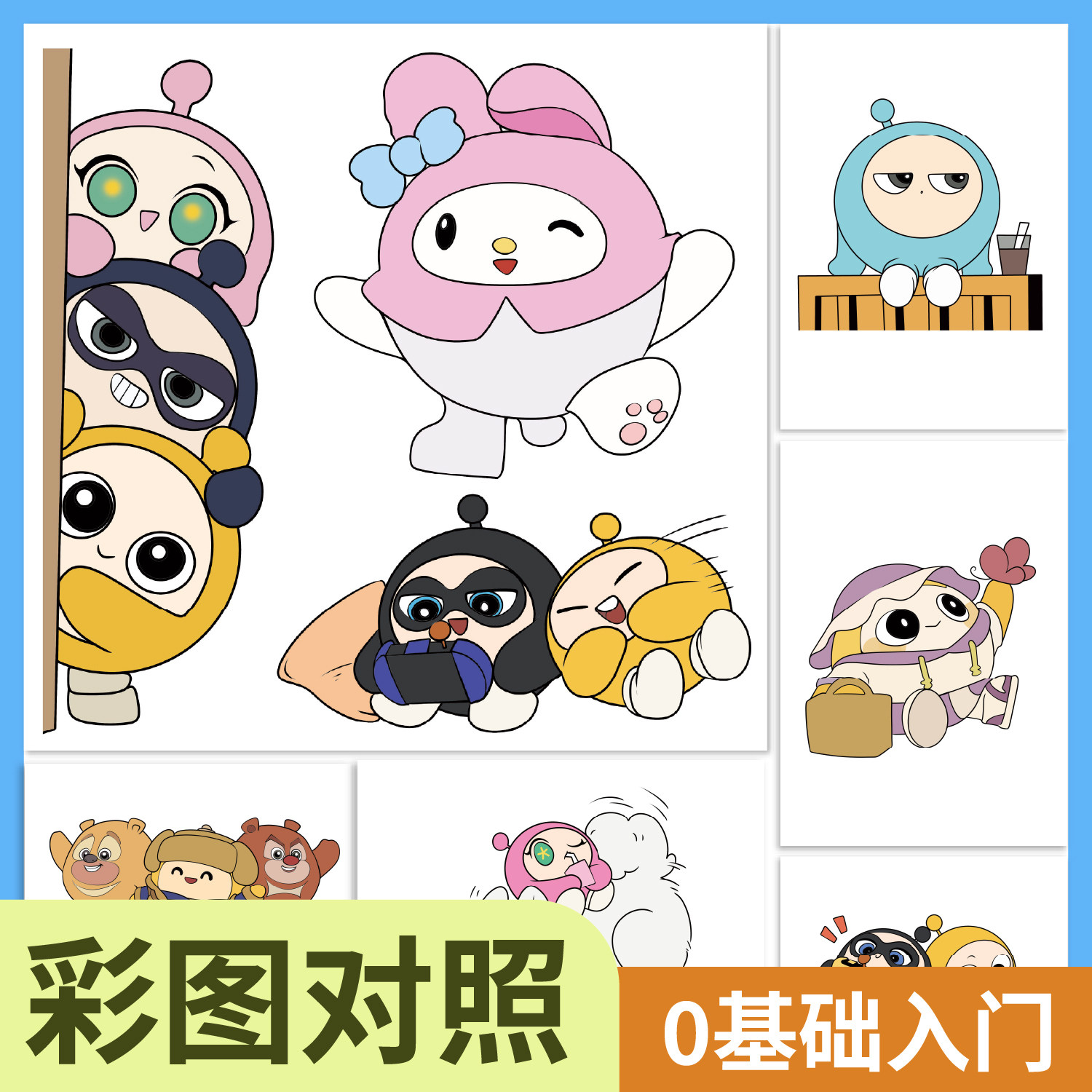 蛋仔派对图画本女孩系列儿童绘画小学生入门基础画册幼儿园描摹本临摹本动漫线稿素描涂色漫画书本盲盒本填色