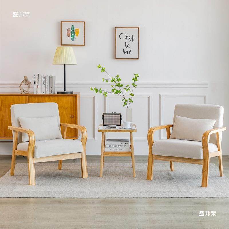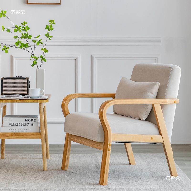 北欧简约实木沙发椅布艺组合小户型出租房休闲单人双人经济客厅椅