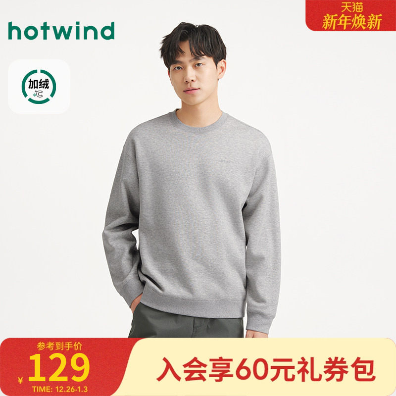热风2025年冬季新款男士小字母绣花纯色卫衣宽松休闲基础简约