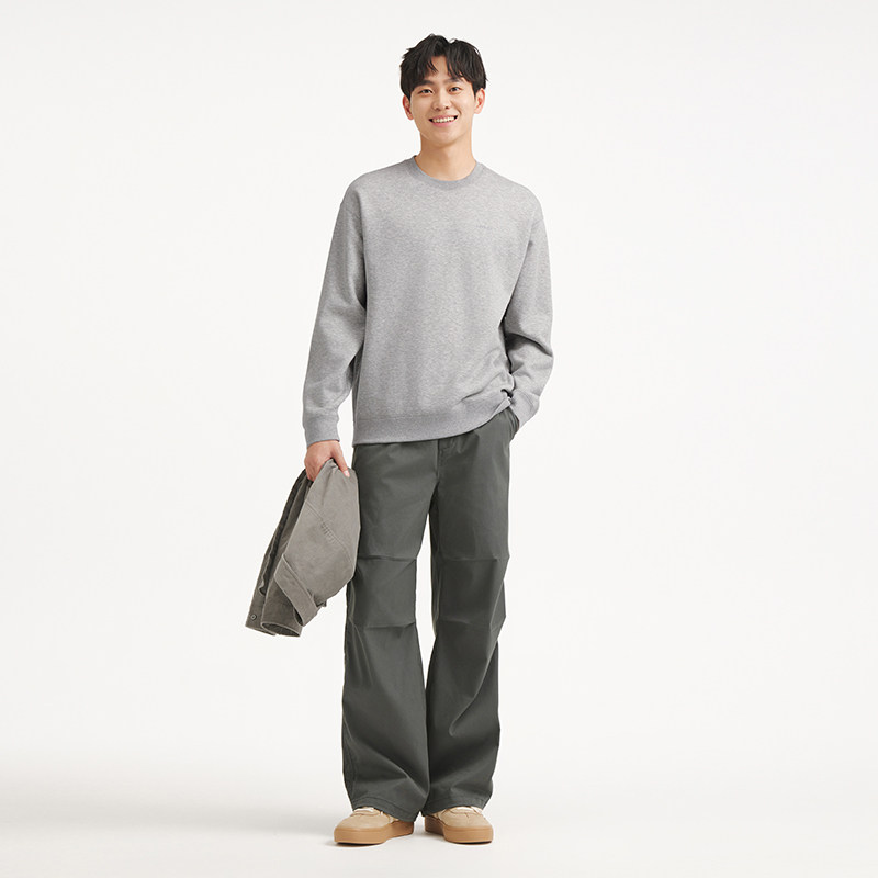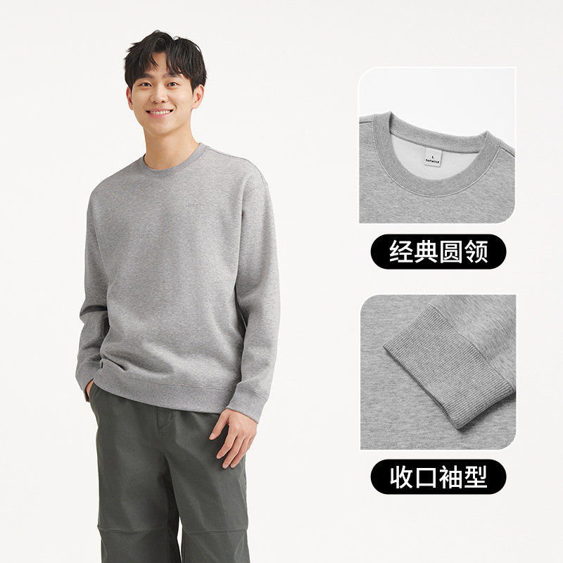 班尼路重磅卫衣男款秋季基础纯色圆领内搭男款宽松大码正肩套头衫