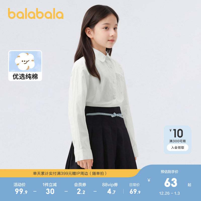 巴拉巴拉童装女童衬衫儿童白衬衣春大童长袖上衣甜美