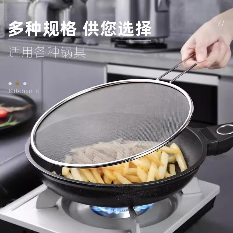 厨房不锈钢带手柄防油网防油溅锅盖防油溅网罩防油爆网盖油隔工具