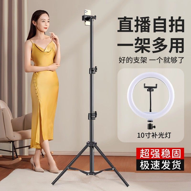 直播手机支架拍照三脚架桌面补光灯道具自拍杆抖音户外落地三角架