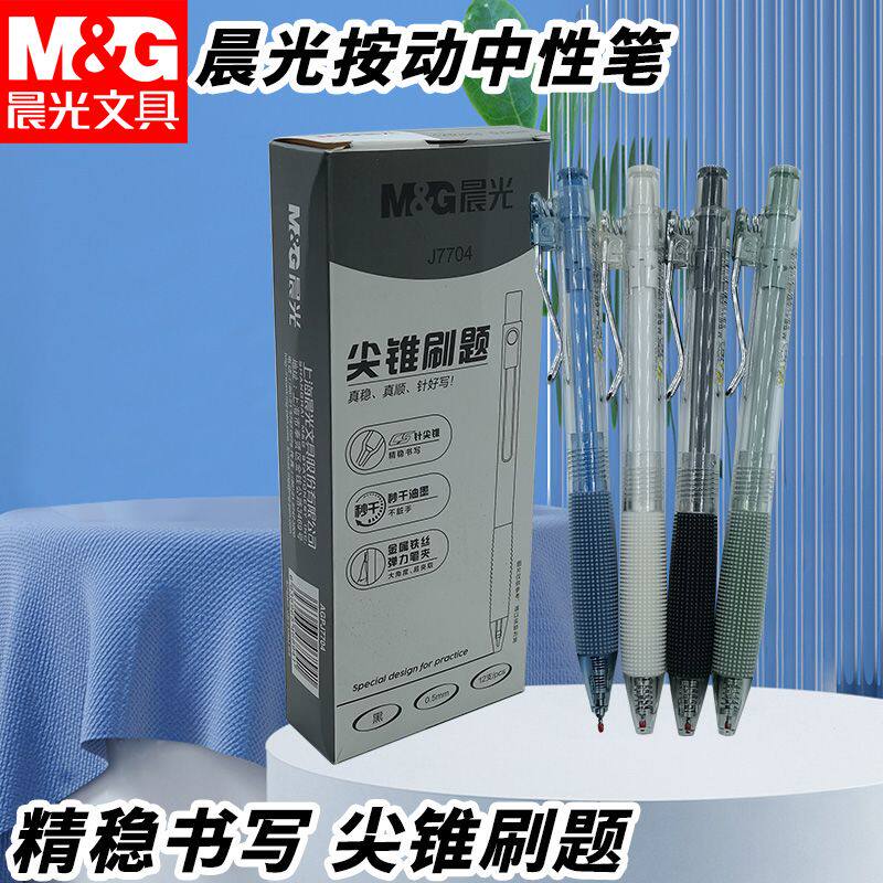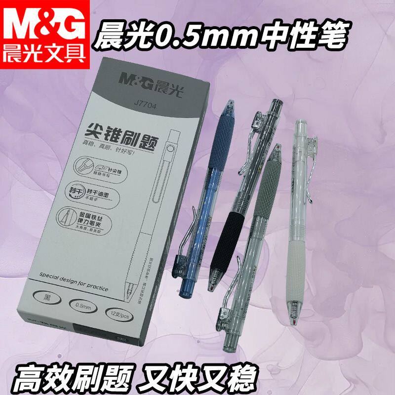 晨光按动中性笔小毛刷速干AGPJ7704黑0.5针尖锥学生专用好写字笔