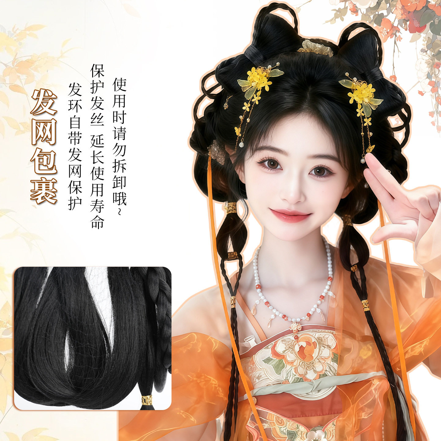 古风汉服假发髻盘发一体式发包古装明制唐风懒人造型垫发全套头饰