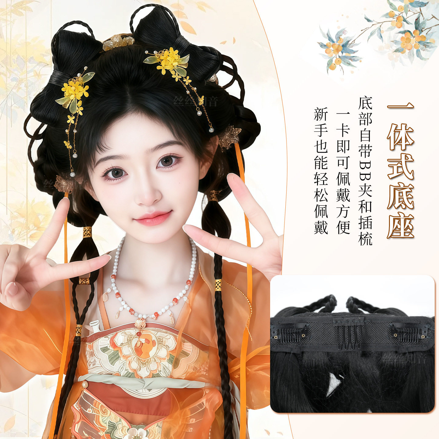 儿童汉服假发一体式古风盘发发髻女童蝴蝶结发包古装头饰垫发造型