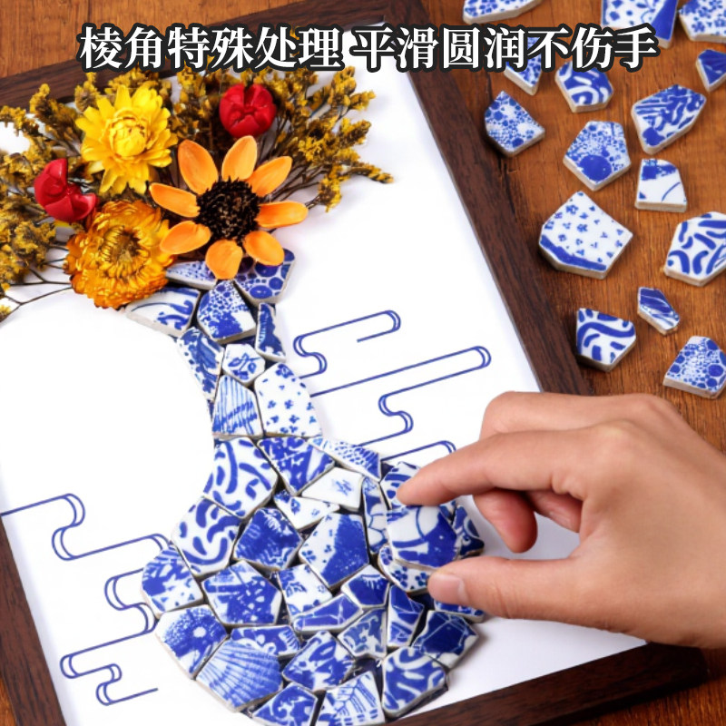 非遗青花瓷拼贴画手工艺diy材料包相框画马年传统文化陶瓷片作品