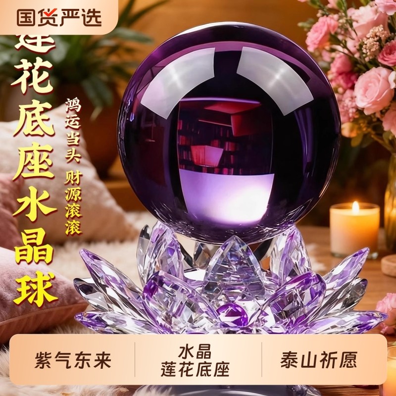 紫色水晶球摆件水晶莲花底座紫气东来客厅办公室装饰乔迁礼物玄关