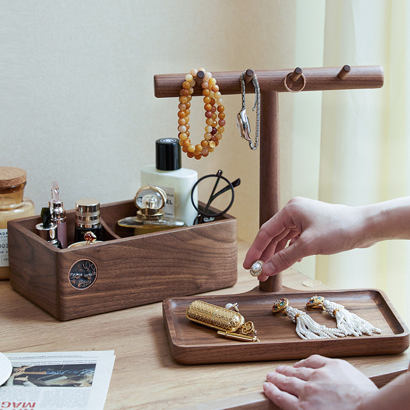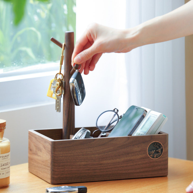 黑胡桃木挂钥匙收纳架进门口玄关客厅家用托盘桌面置物架新婚礼物