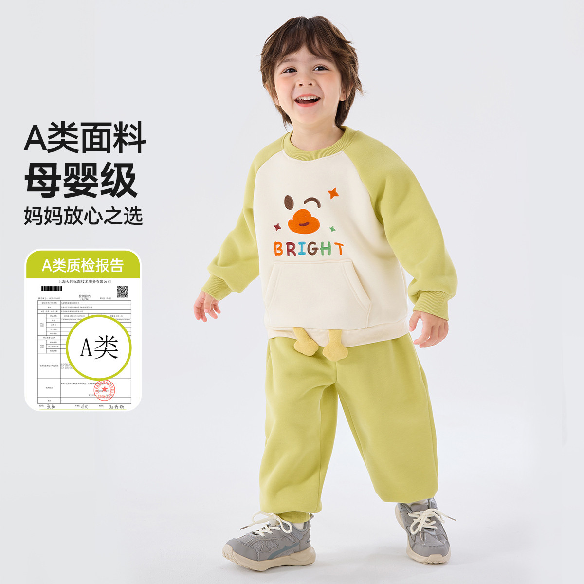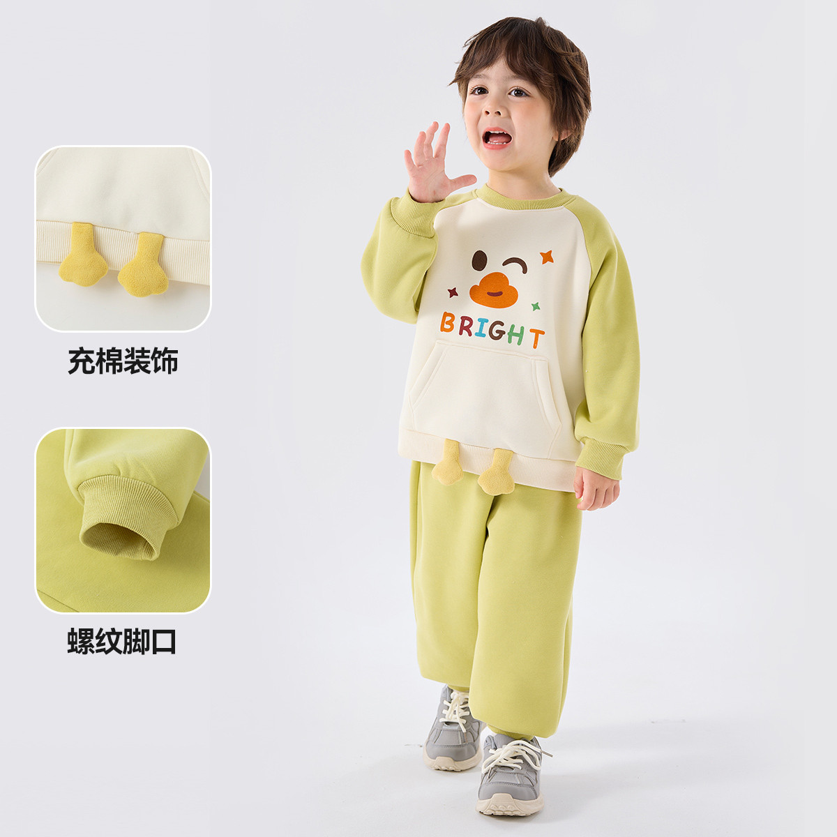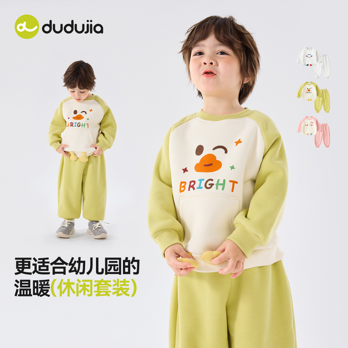 嘟嘟家男童套装冬季儿童加厚卫衣裤子女童冬装绒上衣长裤童装衣服