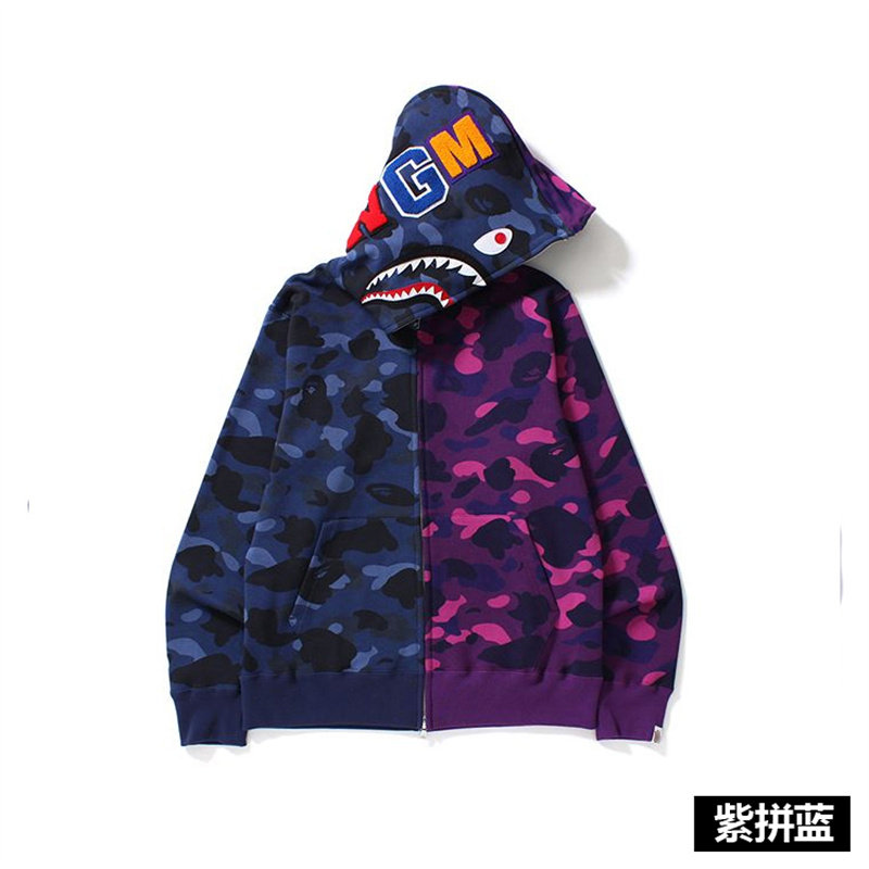APE连帽卫衣高版本SHARKAPE鲨鱼迷彩拉链外套亲子秋冬装蓝色黑色
