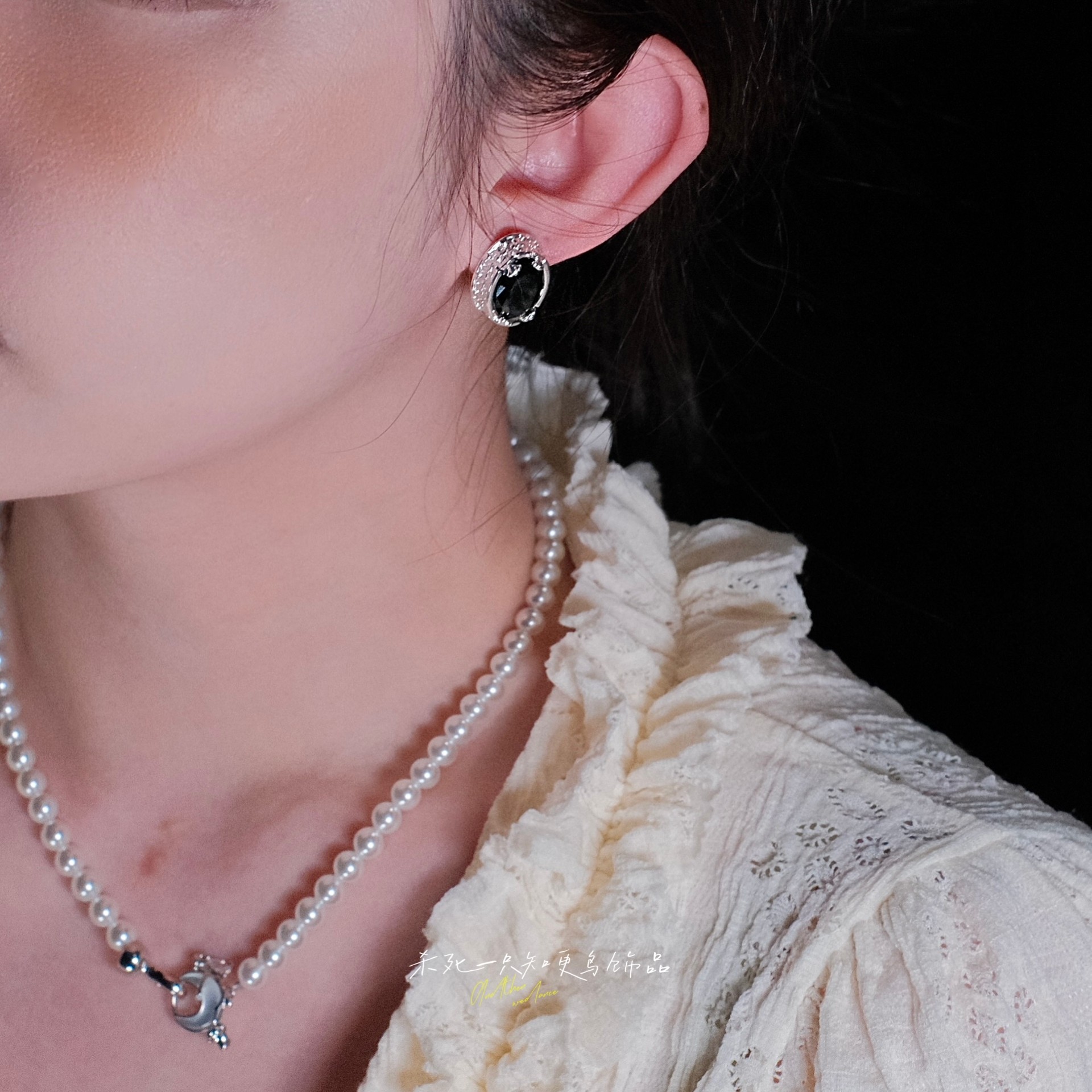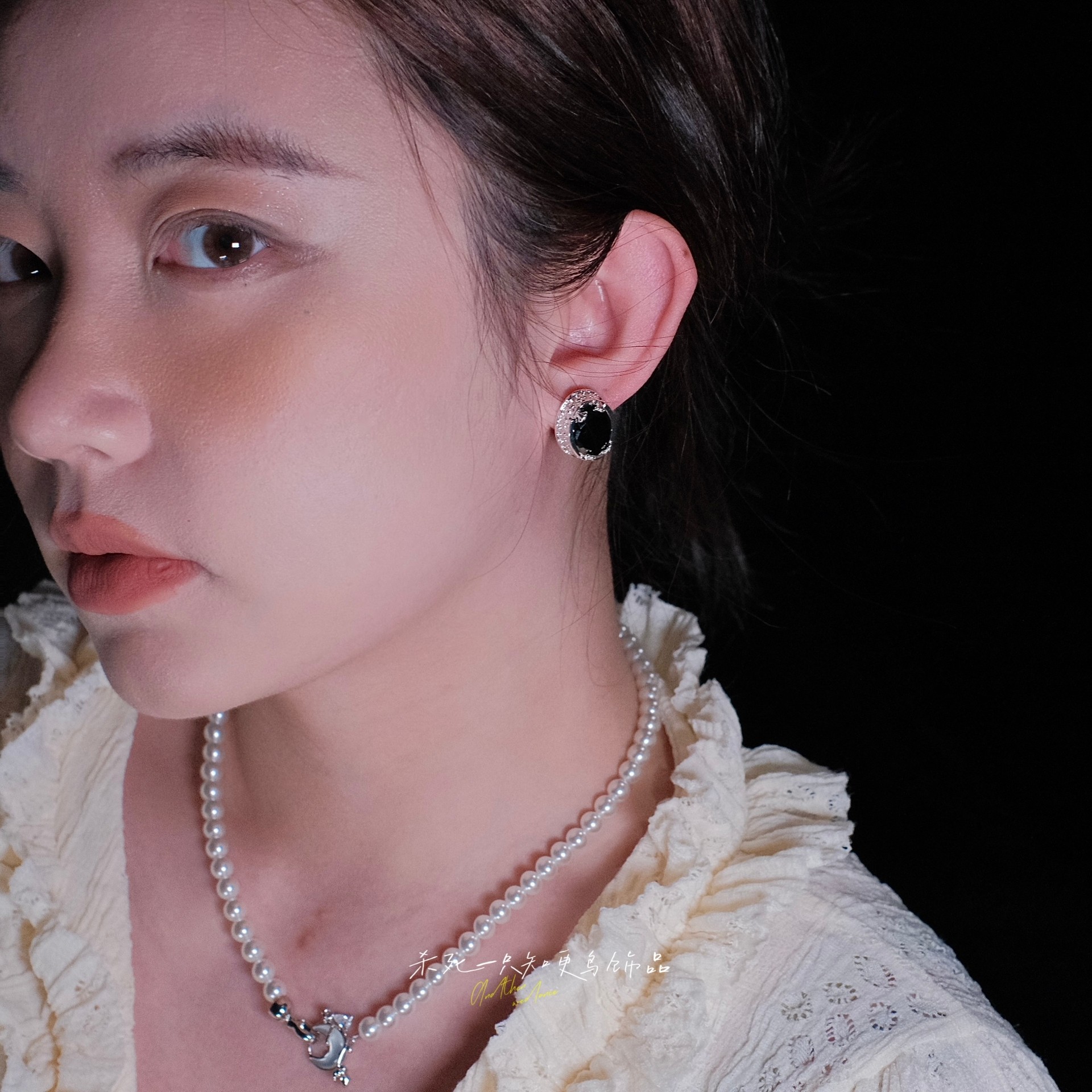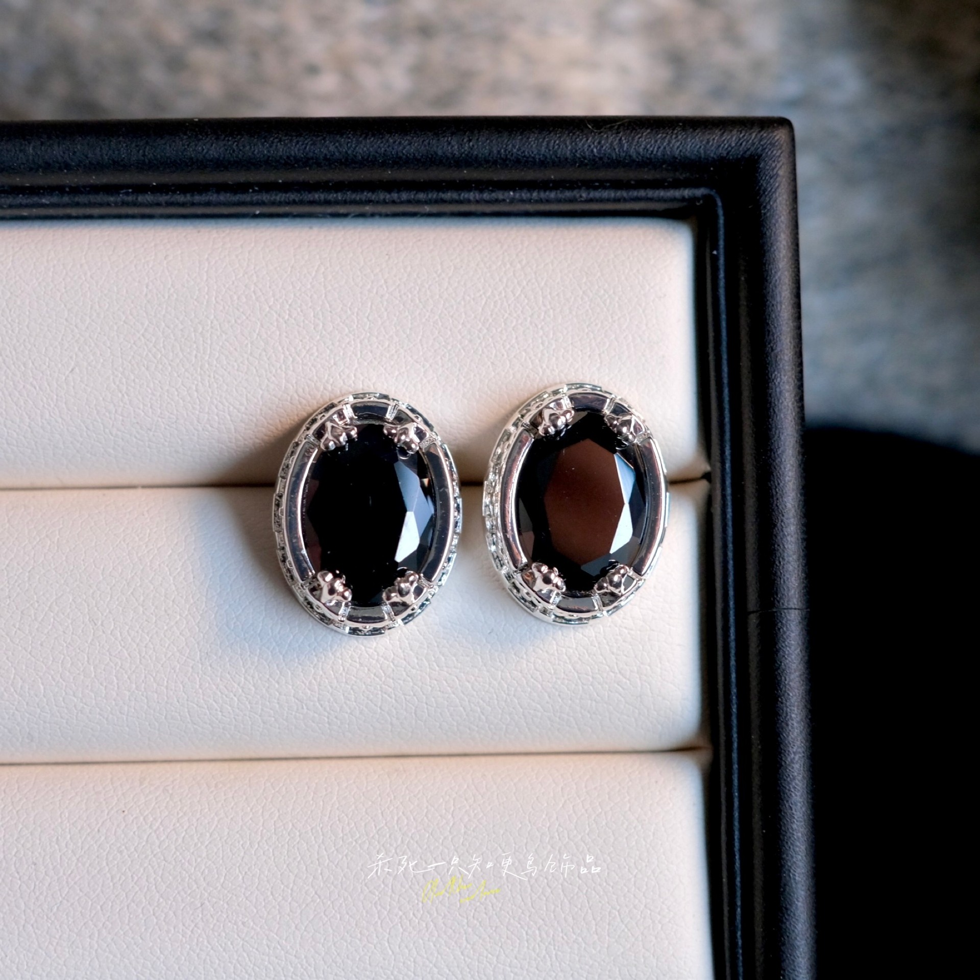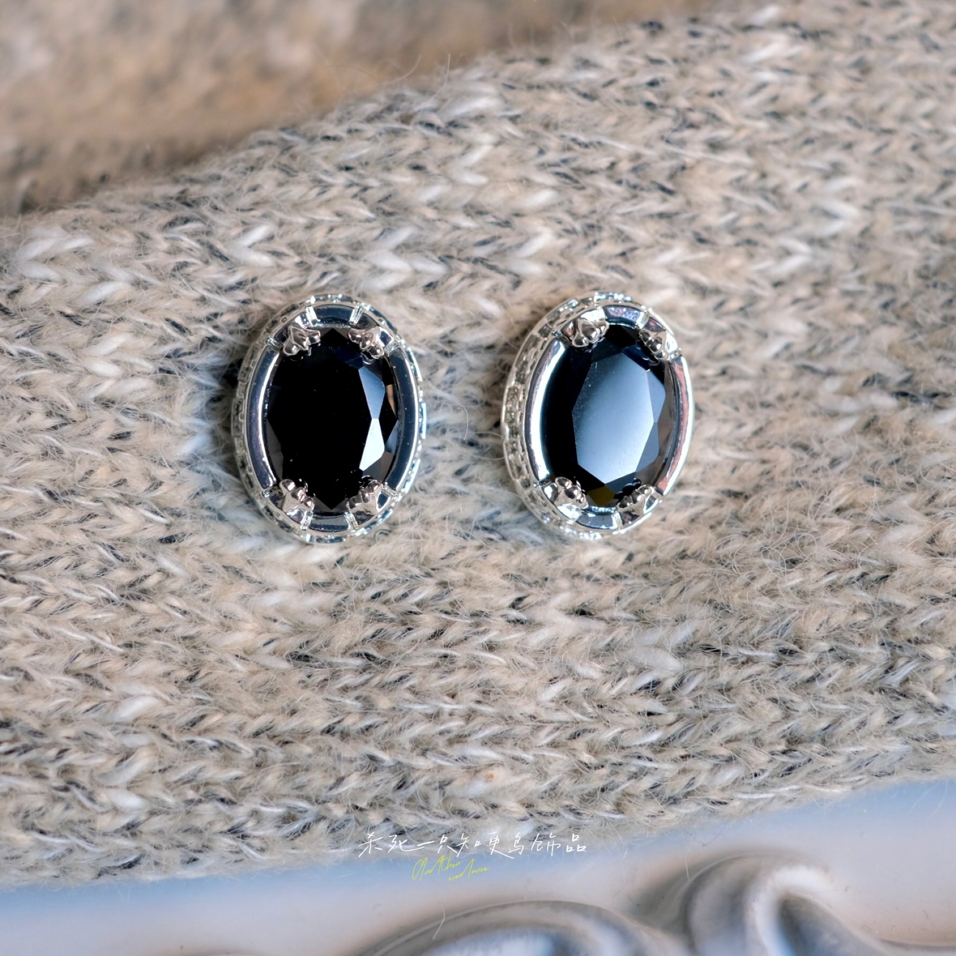《秘境之眼》法式复古小众冷淡风黑色椭圆形几何简约耳钉耳环耳夹