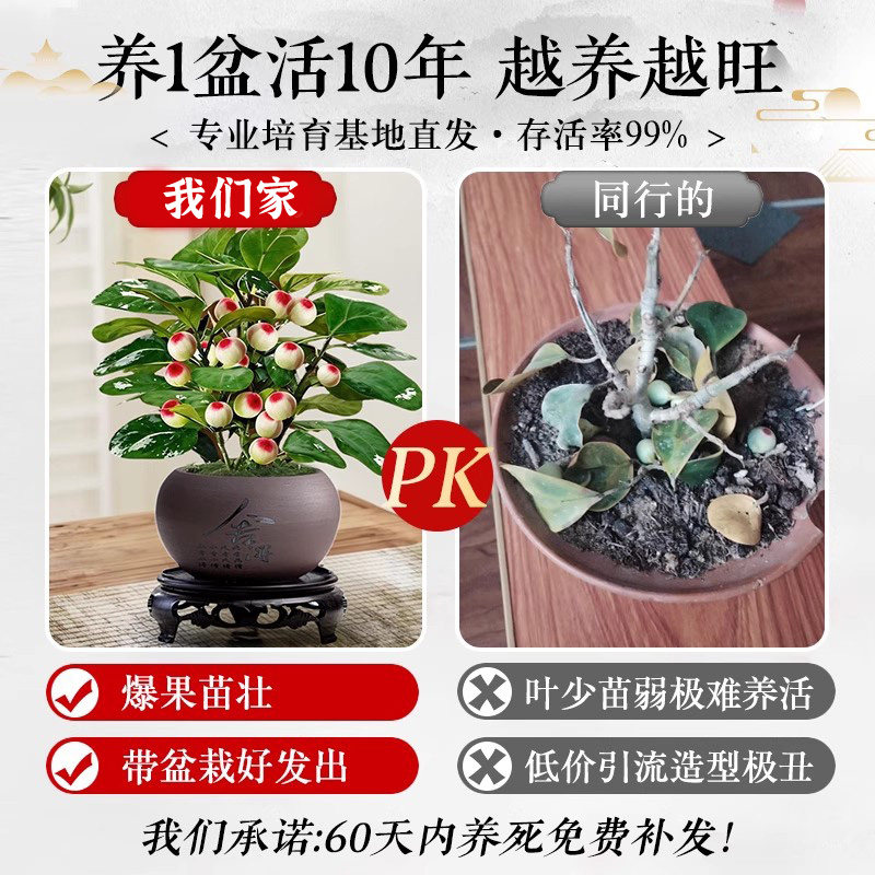 小盼菩提盆栽带果室内客厅绿植桌面禅意老桩盆景摆件好养阳台造型