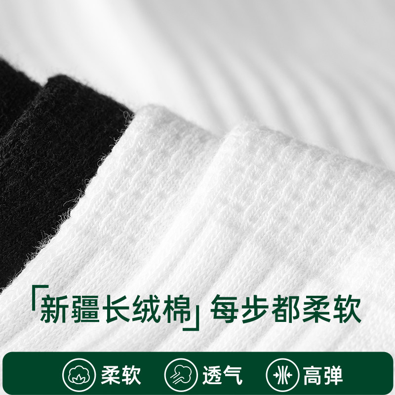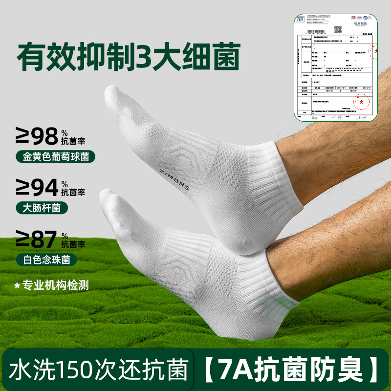 子墨棉品袜子男士短袜冬季薄款白黑色运动船袜防臭7A抗菌纯新疆棉