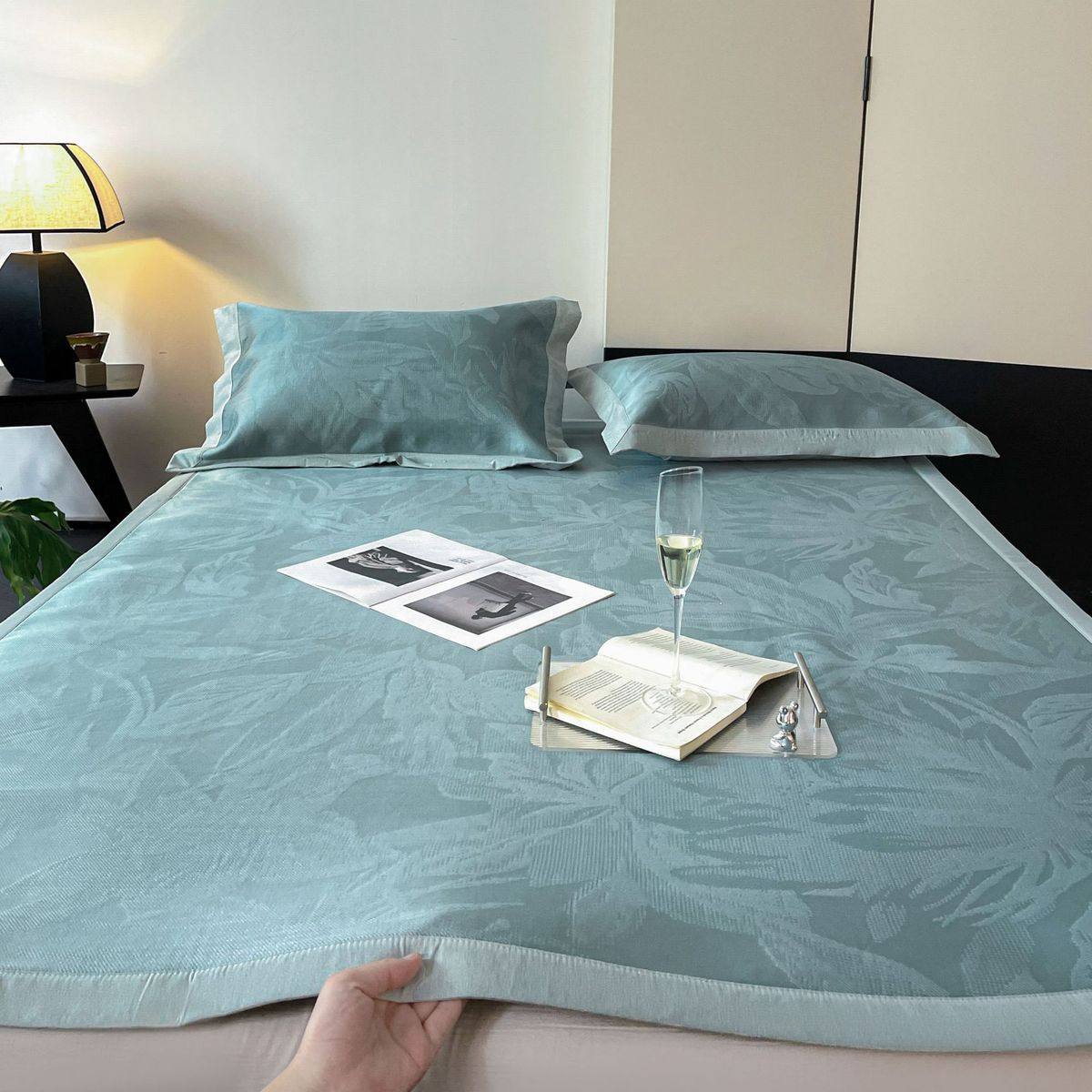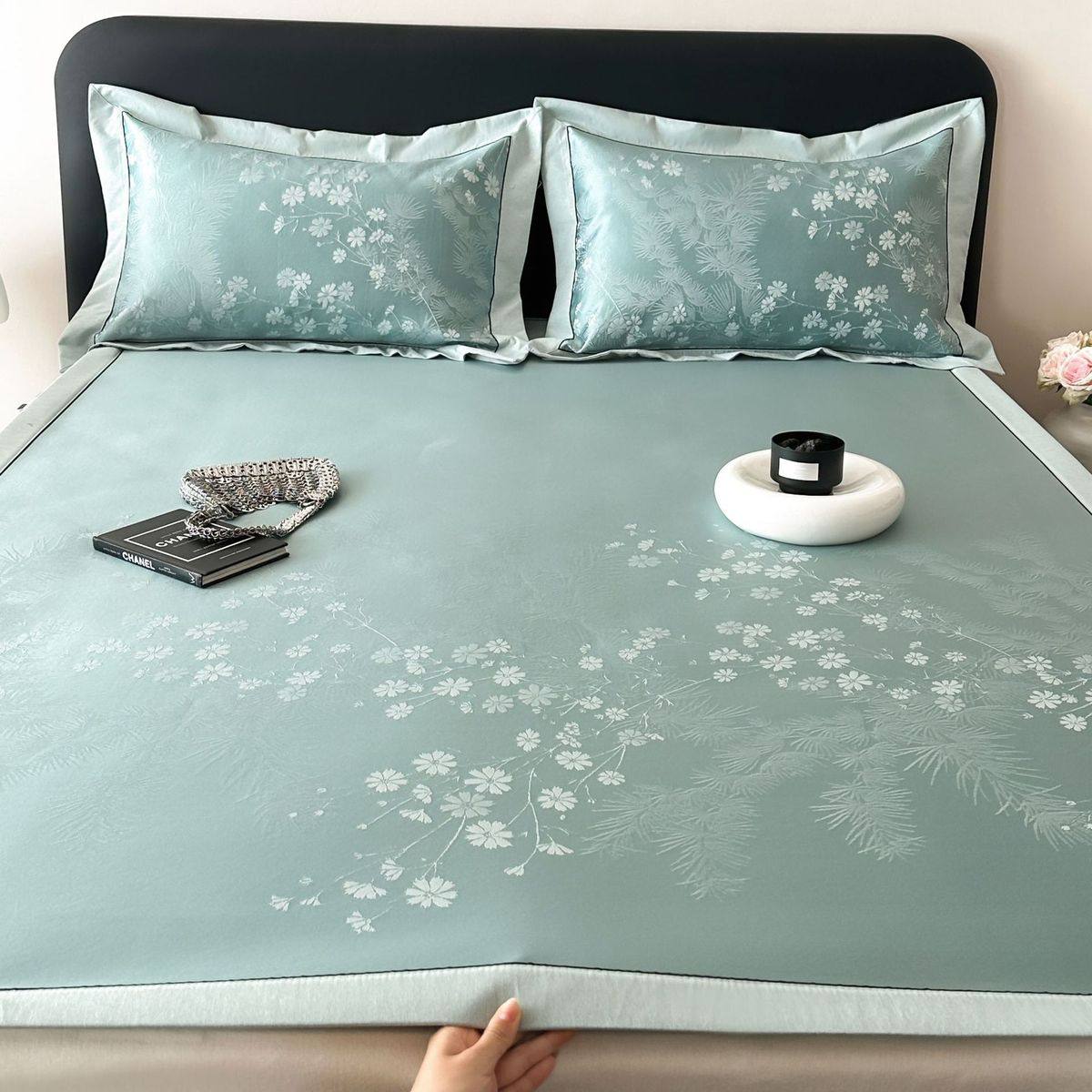 夏可高级感提花冰丝席子床笠款高端家用凉席三件套轻奢机洗空调席