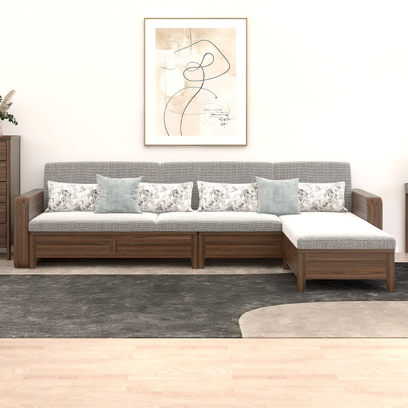 全实木沙发客厅简约现代小户型胡桃木双人直排4人位三人位储物