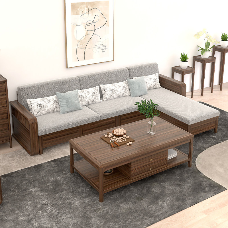 新中式乌金木实木沙发组合大小户型客厅冬夏两用别墅现代储物家具