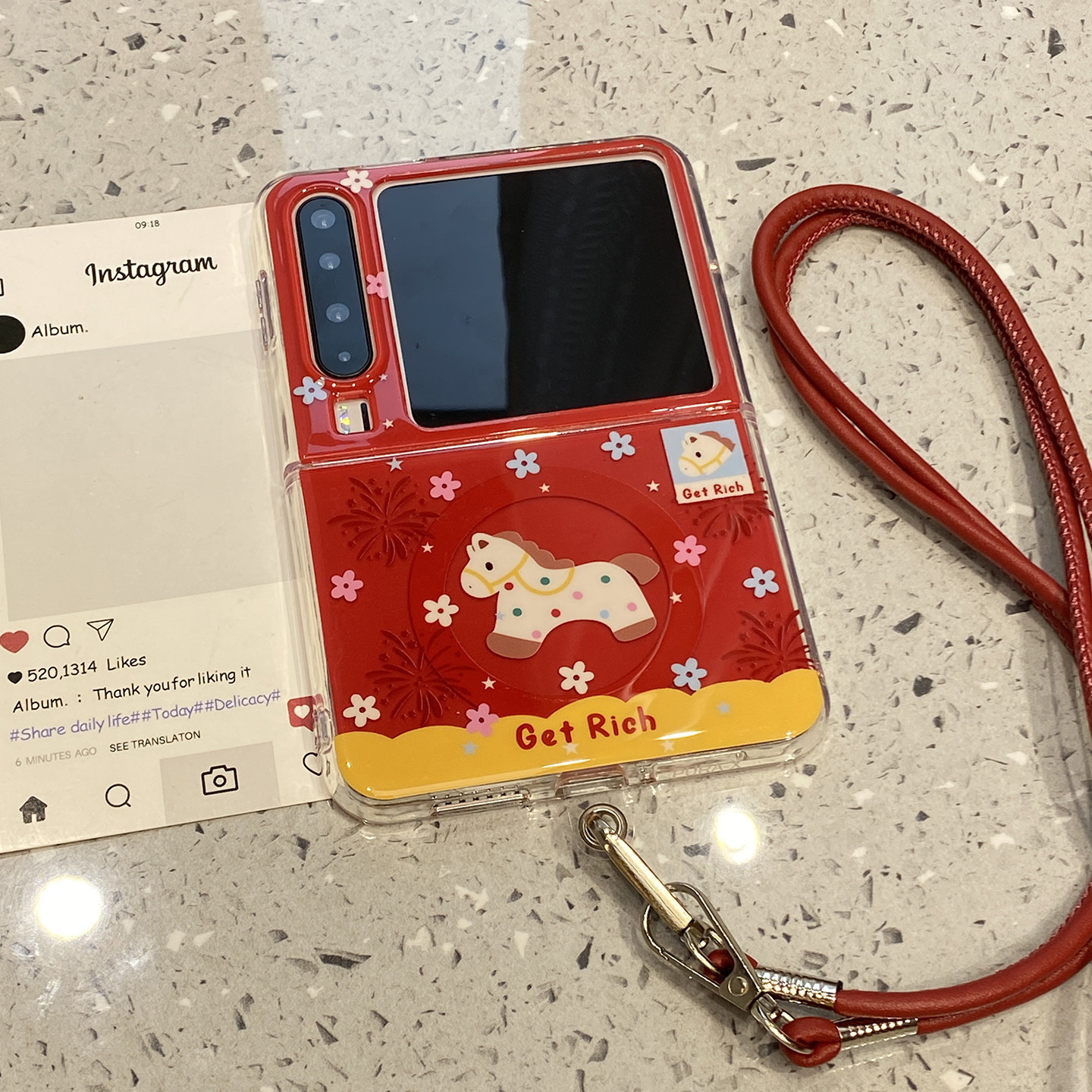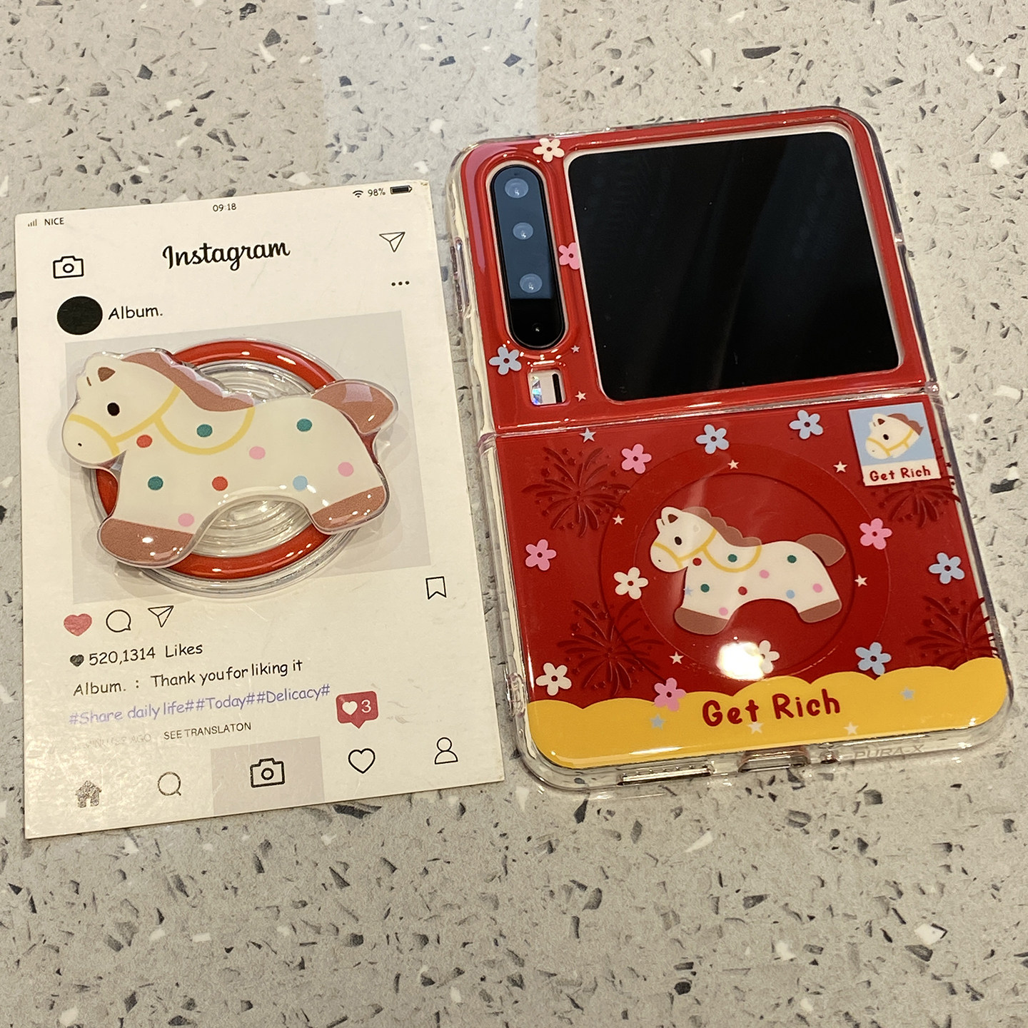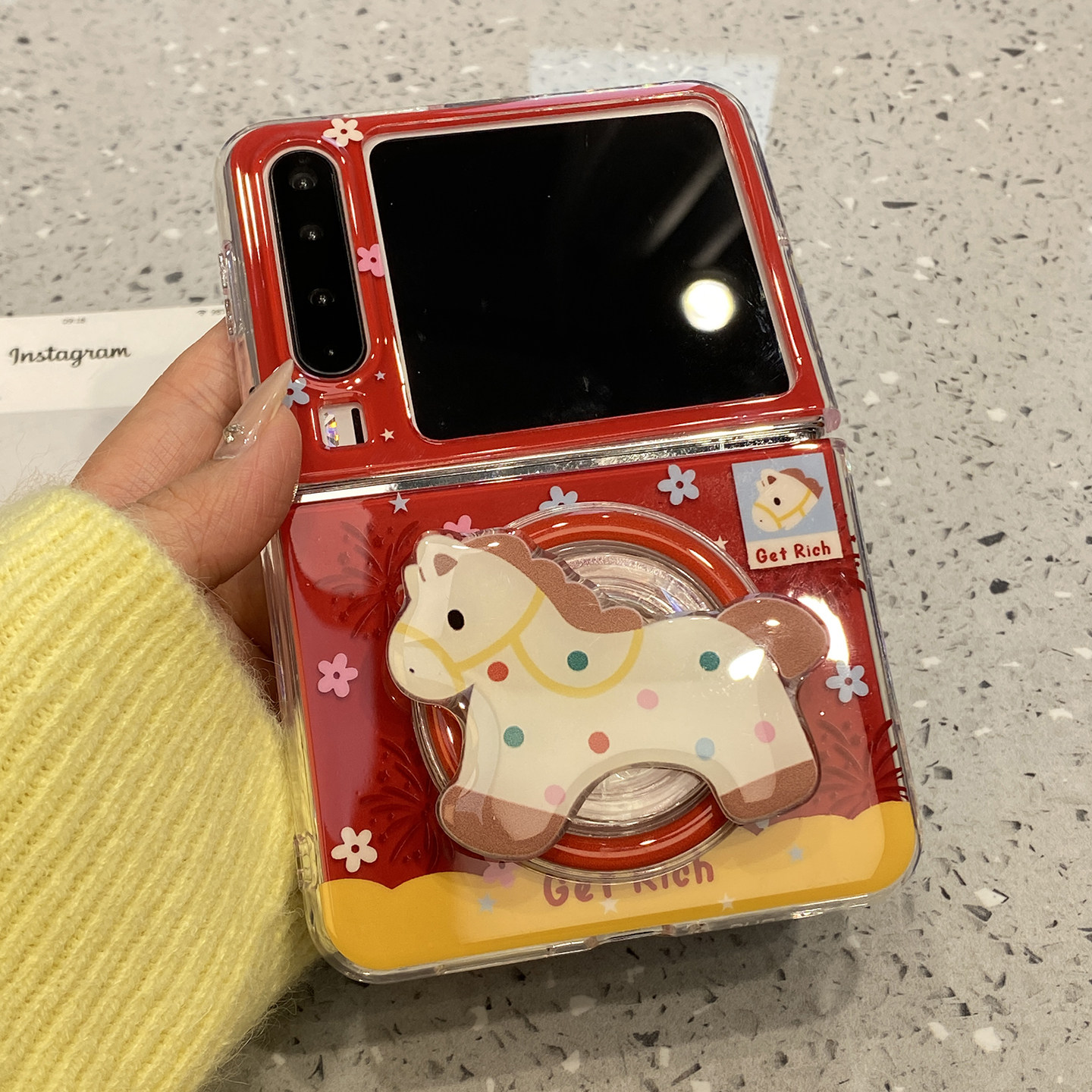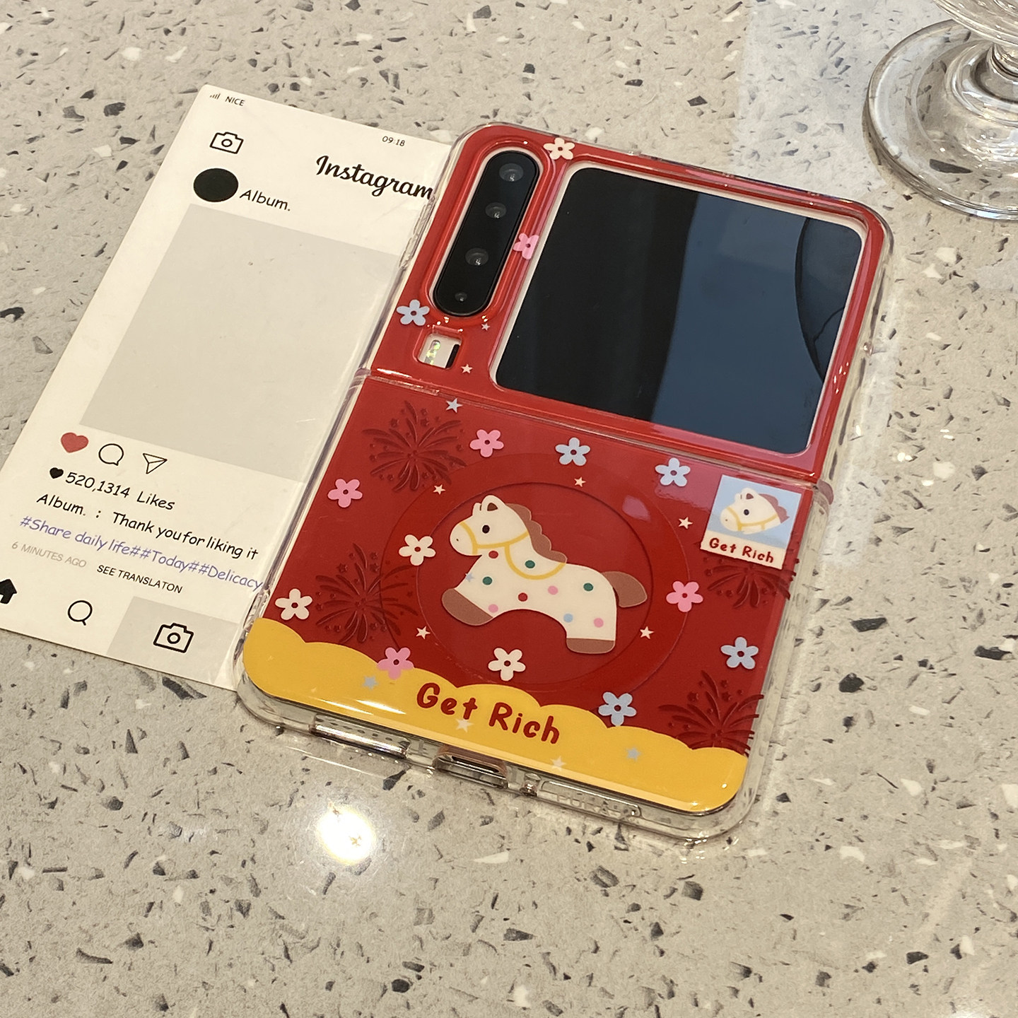 红底雪花可爱小马磁吸支架适用华为purax手机壳Pocket2小米mixflip2三星zflip7典藏版6折叠屏5女款马年本命年