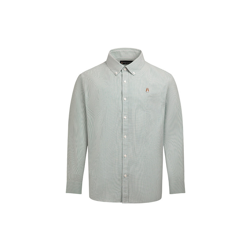 【全棉细条纹】暇步士男装2025秋季新款经典纽扣领休闲长袖衬衫