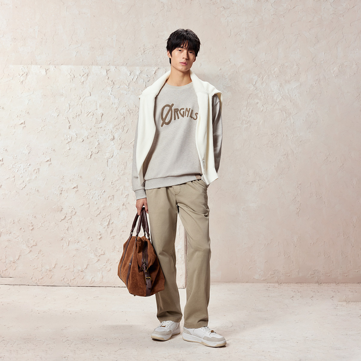 宽松版型,圆领领型,拼接面料,立体字母