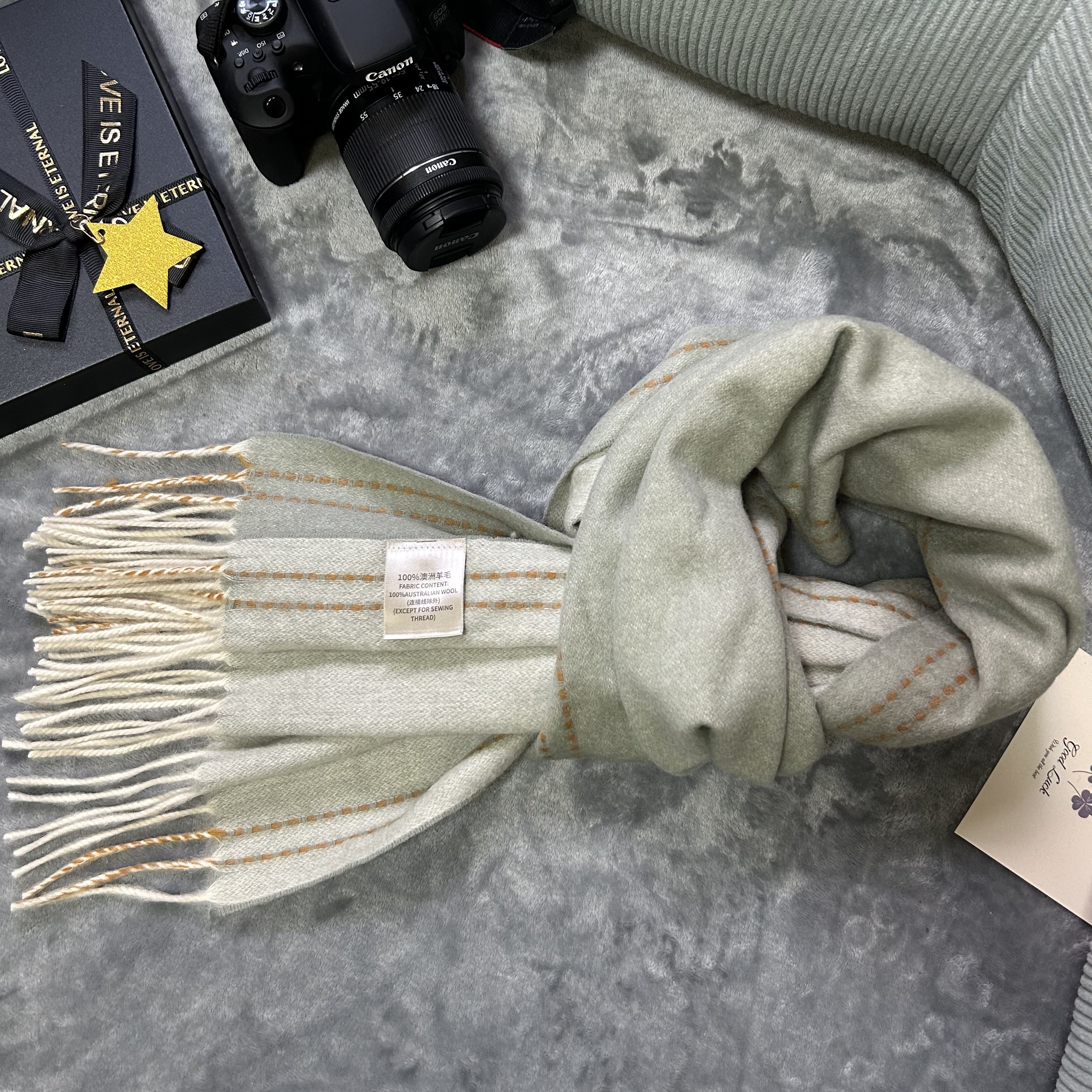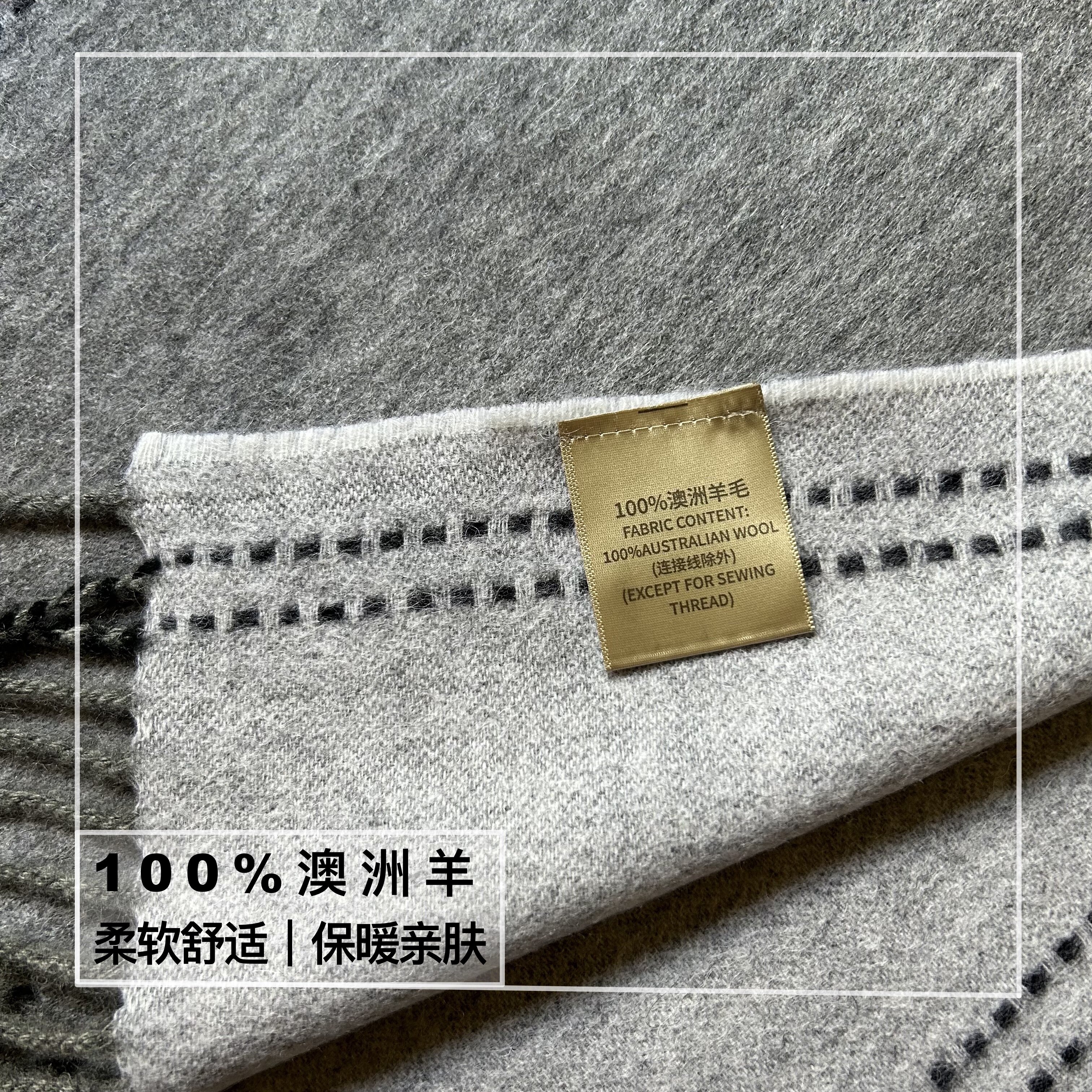 百搭100%WOOL纯羊毛围巾女纯色缝线设计双面羊毛披肩冬季保暖围脖
