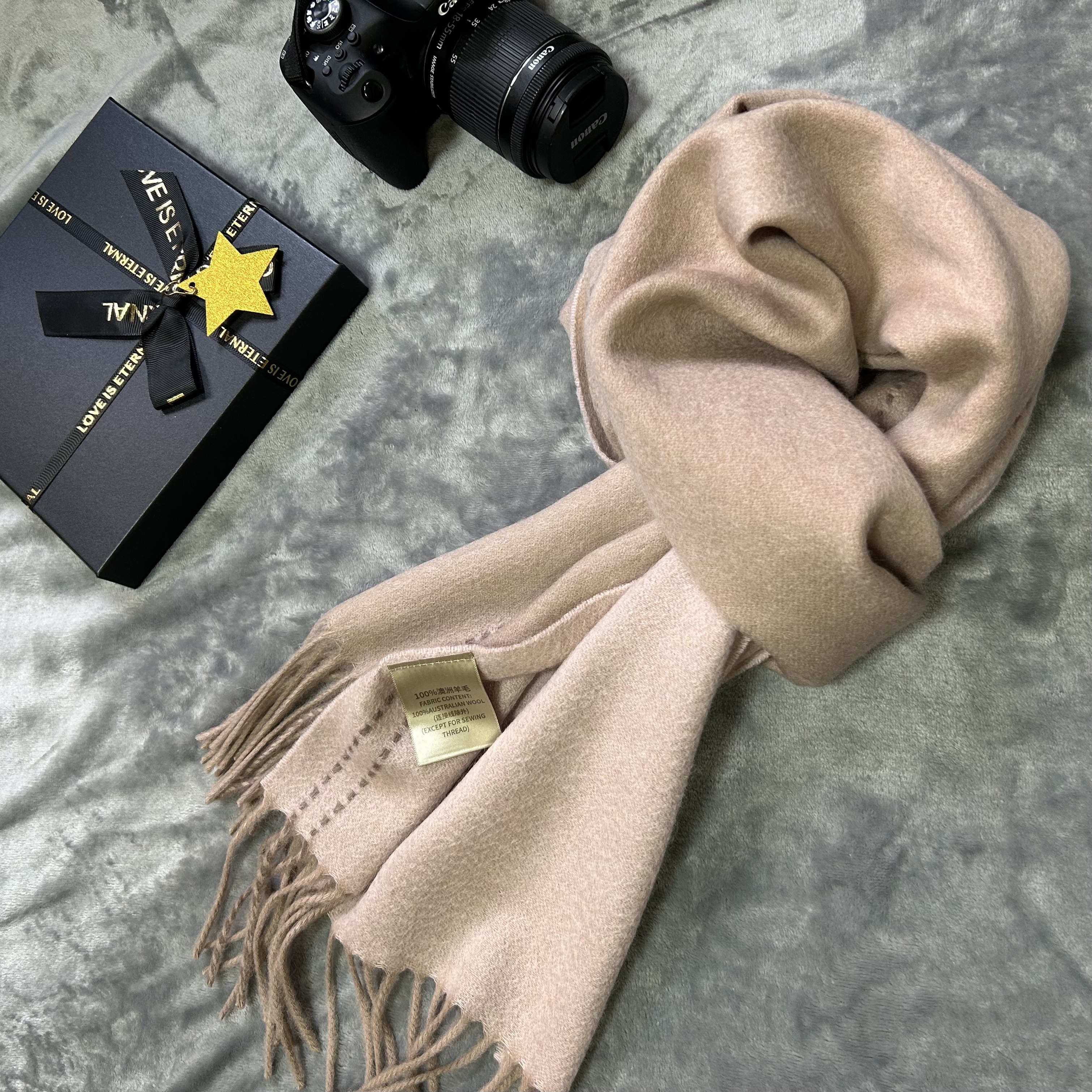 【王俊凯同款】骆驼围巾冬季女新年礼物保暖围脖男针织蓝色围巾