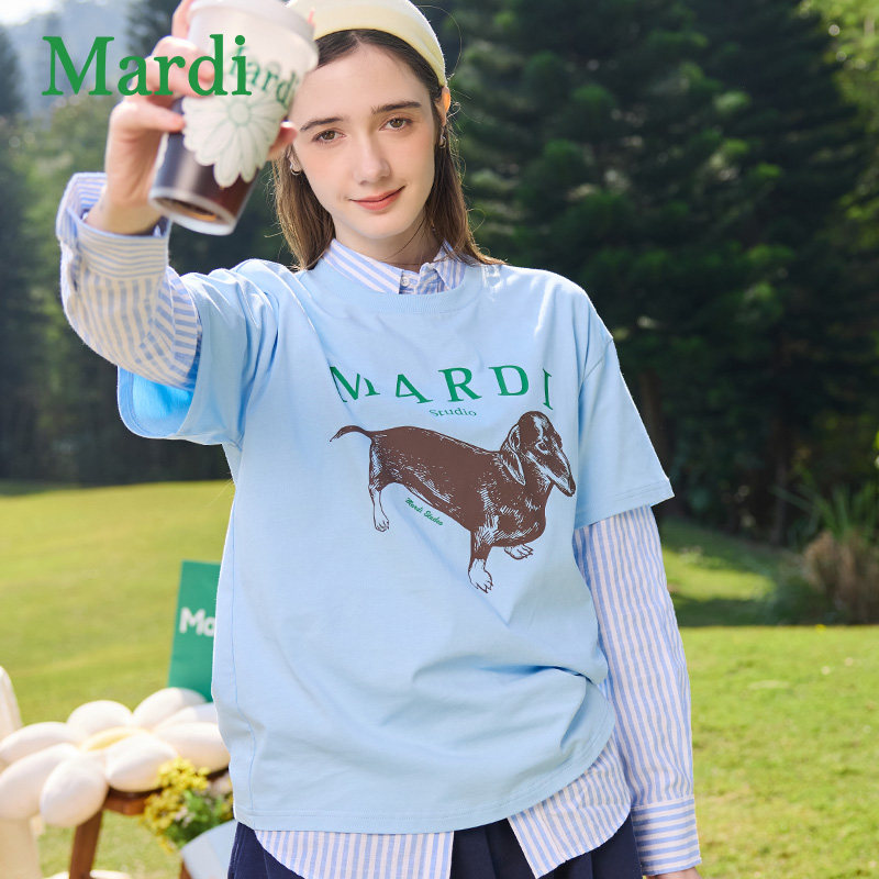 MARDI经典腊肠狗字母时尚短袖2026夏季修身显瘦圆领纯棉t恤上衣女