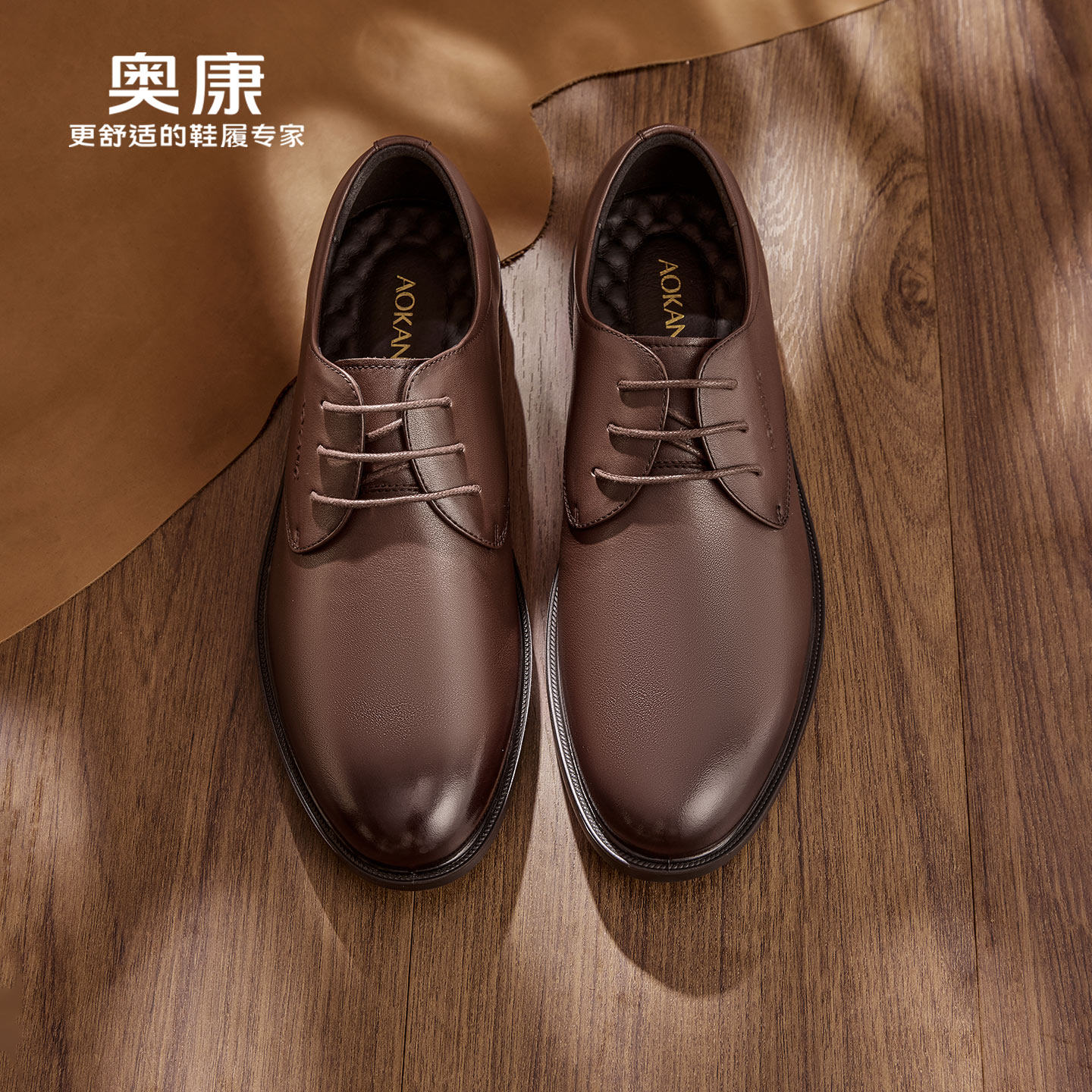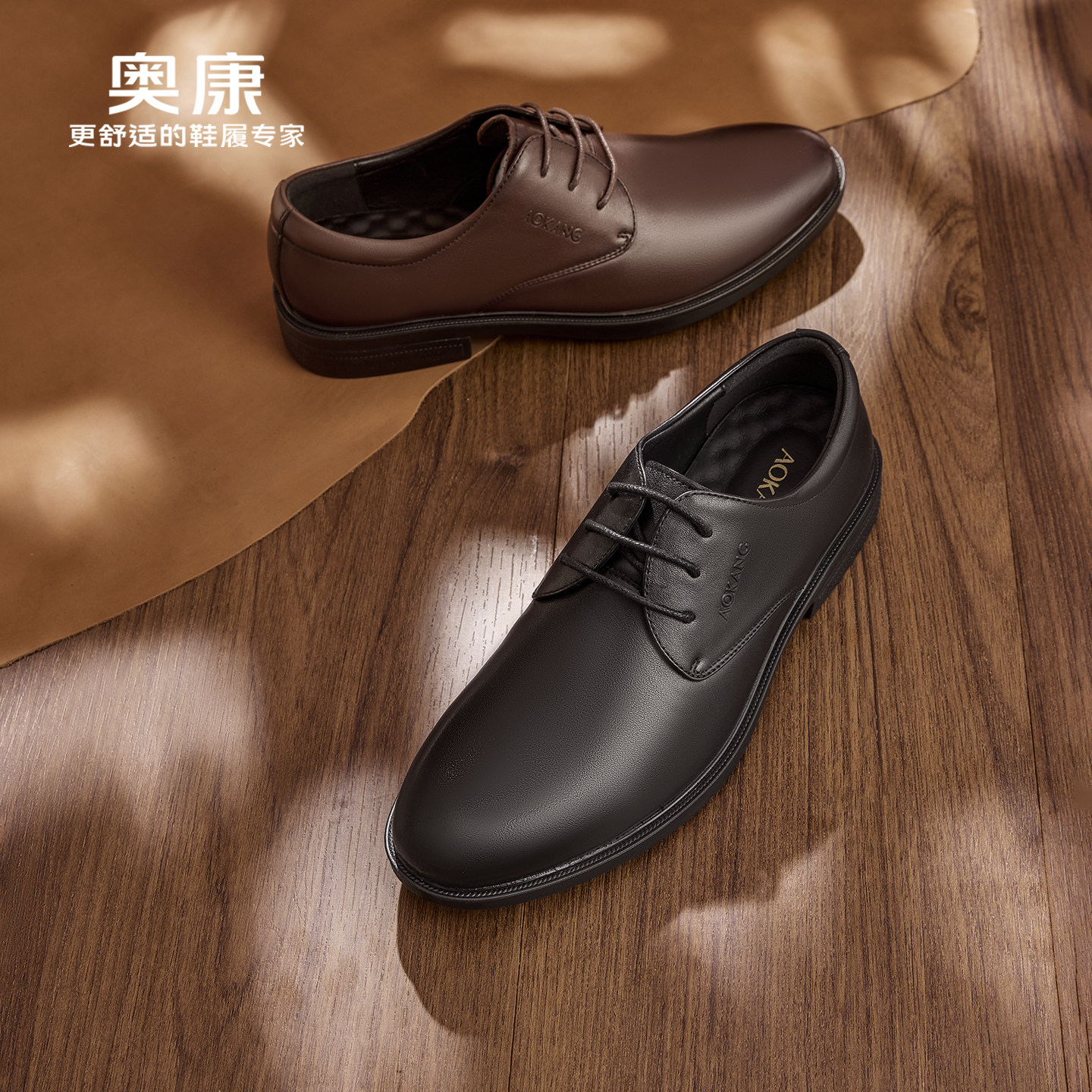 奥康男鞋春秋季时尚商务休闲皮鞋男真皮软面系带办公室百搭爸爸鞋