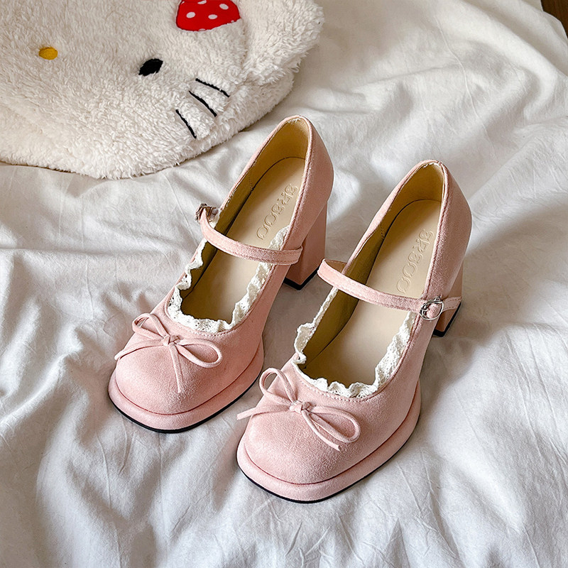 法式蝴蝶结粉色玛丽珍高跟鞋女2026年春季新款配裙子浅口粗跟单鞋